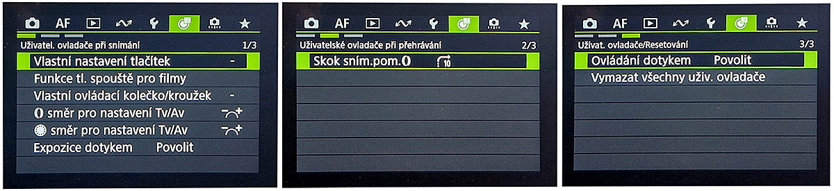 ZELENÁ podnabídka UŽIVATELSKÝCH ovladačů má 3 sady