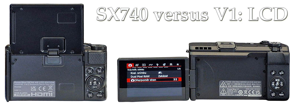Canon PowerSot SX740 a PowerShot-V1: srovnání LCD