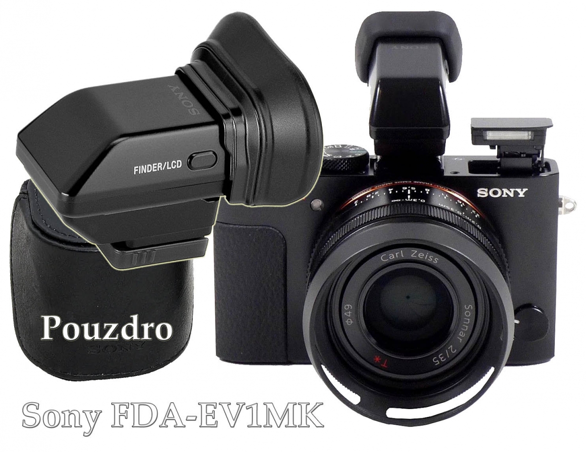 Ještě k hledáčku. Nedávno jsme vykoupili od OBŘÍ nadnárodní firmy několik Videokamer a v dodávce bylo i pár  hledáčkůINTERESANTNÍ HLEDÁČEK Sony FDA-EV1M na přítroji Sony, konkrétně FDA-EV1MK, pasující dle výrobce až na SEDM typů vyspělých kompaktů firmy Sony. Jinými slovy: nebyl by špatný takový koncept k V1, kdy by si uživatel mohl volitelně pořídit hledáček do chytré patice - pak použije „samo-šlehací“ Blesk Mrkající - a kdo z rodiny (firmy) by chtěl fotit bez hledáčku, nechal by jej holt doma. Podobně to měla relativně nedávno Videokamera JVC GC-PX100. Zpět k realitě: absenci hledáčku umí vypomoci sluneční clona jako stínítko, představeného na Sony FDR-AX43, abych Pomáhal a Chránil: Pomáhal prodejnosti toho modelu, který za to stojí; a Chránil uživatele před jejich údivem nad 100tisíci Luxy u Jadranu…