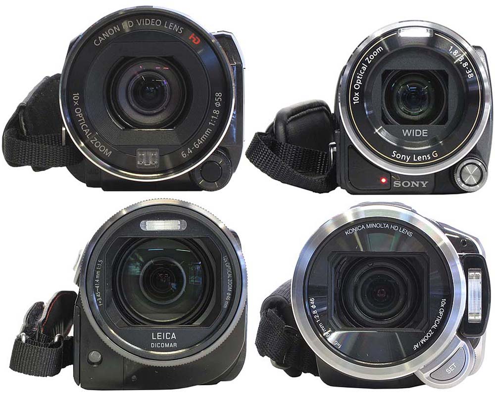 Objektiv a rozsah. Zjevný vítěz i evidentní poražený jsou v této podskupině výrazní. Zatímco Sony začíná se svým přepočtem na kinofilm s nádherným číslem 29,8 mm (!), JVC se opačně stává pro širokoúhlé záběry úplnou noční můrou s výchozím číslem 48,3 mm. Samozřejmostí je výraznější dosah transfokátoru JVC v přiblížení, protože Sony svým šírokáčem končí v TELE už na 298 mm, zatímco JVC jede až do 483 mm, ale fandové videokamer ví, nač je dobrá šířka oproti délce (a fanynky výjimečně poprosím, aby se zdržely dvojsmyslností :-D). Panasonic je se svými 35-420 mm ve slušnější středopozici proti modelu Canon, jenž má 43,5-435 mm (no a relativně drahá předsádka Ø 58 se pak i docela prodává). Kdo odezírá, že jediný Panasonic disponuje 12násobným optickým přiblížením, ten si může za bystrost jít natočit další pivko (víno, limo, rum, kávičku) a my pokračujeme povídáním o objektivech. Jediným, kdo si na svá skla napříč statiletími nepotřeboval psát nic jiného, než svůj emblém, je foto-Boss Canon. Licenční značky LEICA, Carl-Zeiss či KONICA MINOLTA jsou profláklé dostatečně, ale skutečnou výrobu oněch uvedených fabrik může čekat jenom laik. Do souboje si tentokrát zvolil svůj název i Sony a objektiv zove Lens G…