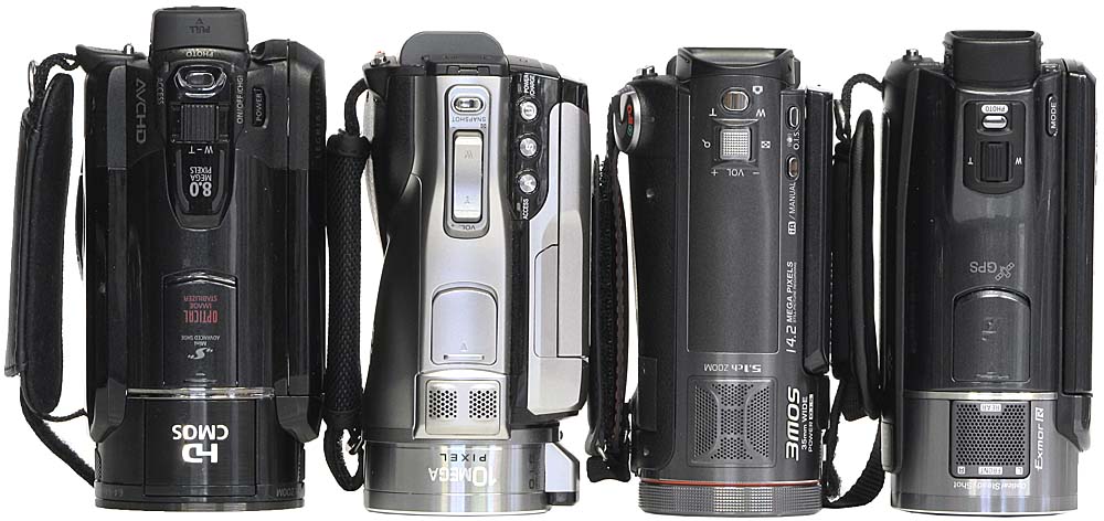 čtveřice porovnávaných videokamer zezadu (Kliknutí zvětší)