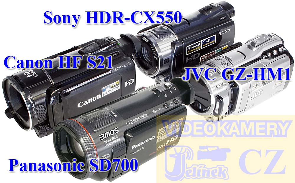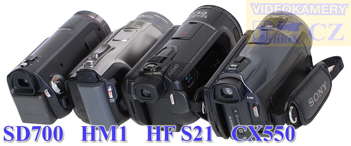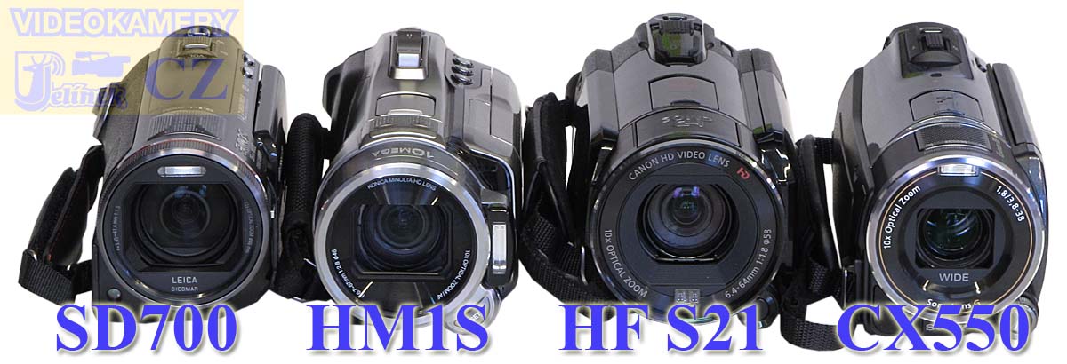 8. Doplňky a Špeky (+ co nemají ostatní). Běžné rozteče botek doplňků jsou shodně k dispozici u HM1 a SD700, zatímco CX550 a HF S21 mají (tzv. inteligentní) botičky vestavěny, ale pro instalaci doplňujících zdokonalovačů (zvuku nebo světla) vyžadují redukce z naší malosériové výroby - samozřejmě jen při požadavku nepoužít originální příslušenství (kterého vpravdě není velká sorta). Canon má nejmasivnější tělo, jediný ze čtyř výklopný blesk a čidlo inteligentního auto-fokusu, které se tak osvědčuje už od krásné miniatury HV10. Přidávám funkci Canon „Před-natočit“, jíž disponuje i Panasonic (tzv. PRE-REC); a ovládací zdířku LANC (u HF S21), již jsme naopak nenašli u jejího tvůrce Sony. Finesu k vyzdvihnutí par excelence vidím osobně ještě v osazení mikrofonů: Canon má totiž stereofonní kanály od sebe jako jediný přes 7 centimetrů na bocích objektivu a to mu umožňuje nahrát OPRAVDU prostorové audio. Subjektivně bych si dovolil tvrdit, že právě Jednadvacítka má nejlepší zvuk z celé čtveřice. Pro JVC HM1S je už zbytečné opakovat hendikep hledáčku, ale vyzdvihněme zmíněnou kolíbku ZOOM-u a vysokorychlostní záznam, jehož podmínečnou (ne)použitelnost jsem popsal v recenzi firemní kolegyně HM400. Vzhledem k rozsáhlosti bodu jej rozděluji na dva odstavce a vkládám další Galerii…