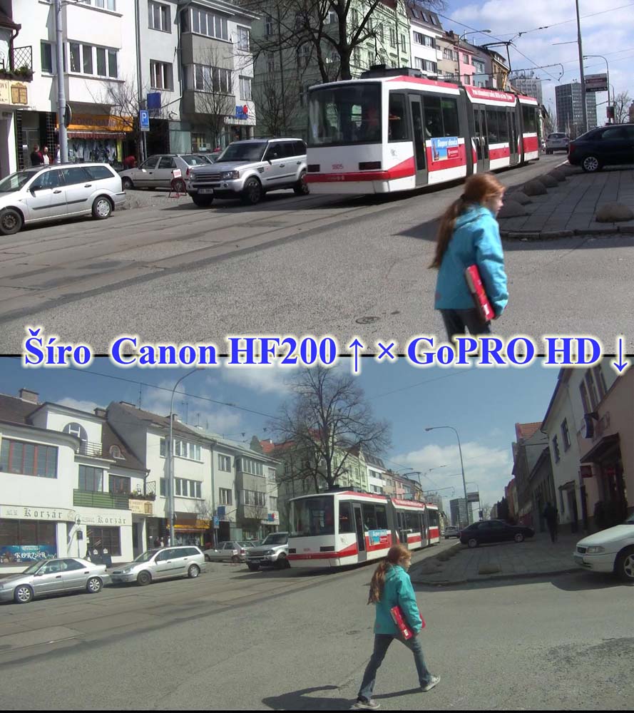 Doplnění galerie (14.5.2010): srovnání širokoúhlosti GoProHD a Canon HF200..
