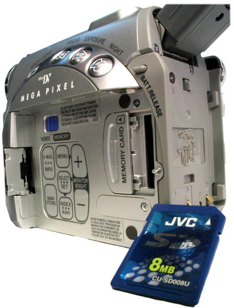 JVC GR-D200 a její slot na SD-karty (Klikni pro zvětšení)