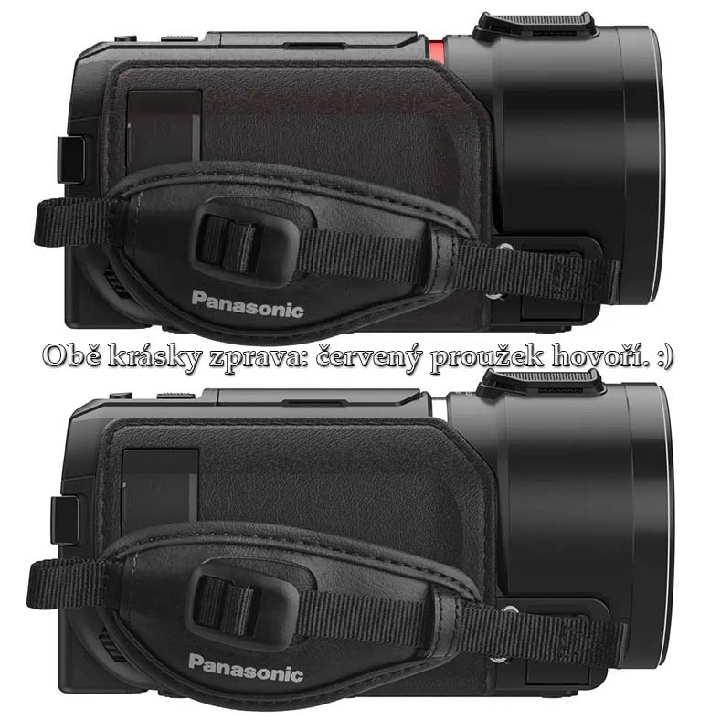AŽ přichází Bingo při pročítání produktových PÉDÉEF. Začnu-li od společných dat, jsou tu (téměř) shodná těla, Videokamera Panasonic HC-V900 jako nižší z novinek... stejné čipy i objektivy - s udávanou EXTRA-sestavou skel - s ohniskovými rozsahy 25 až 600 mm (po přepočtu na kinofilm). Snímací čipy jsou mimochodem typu BSI-Senzor Typ-1/2,5“; a to s celkovými 8,57MPx (efektivně 8,29MPx), což je sice pro Full-HD zbytečné, ale musí se chápat logika unifikace. Tedy ze (zanedbatelných) viditelných odlišností je to fakt nula a kdo chce zkoumat ty hlavní, ať poposkočí v textu níže. Tady dodám, že si výrobce nadstandardně fandí ve výdrži akumulátorů VBT190: píše u F-HD 1hodinu a 50 minut, to ještě probereme, ale rozhodně MÁME ŘEŠENÍ…