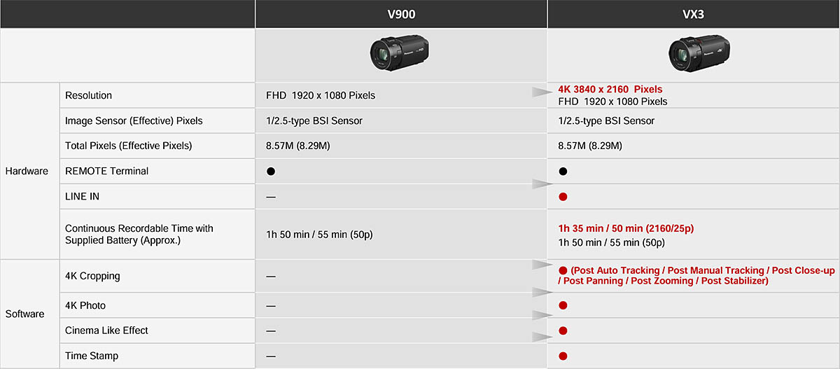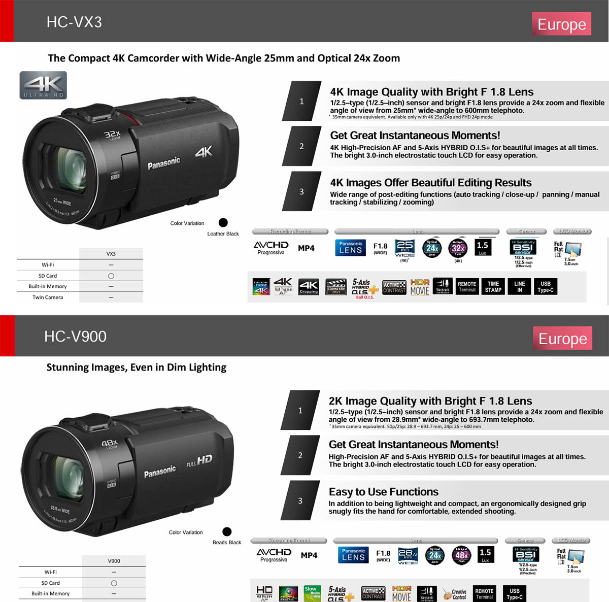 Doslova Blesk z čistého nebe zapůsobil příchod dvou novinek firmy Panasonic! VIDEOKAMERY HC-V900 (F-HD) a HC-VX3 (F-HD + 4K) přináší - navzdory uvadající slávě reportážních kamer pro amatéry - hned několik zajímavých novinek...