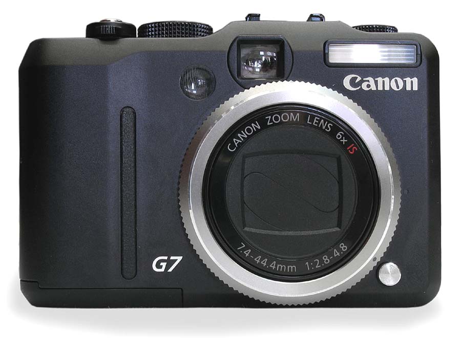 Objektiv nabízí slušný 6násobný ZOOM s běžným rozsahem 35-210 mm (ekvivalent kinofilmu), jeho světelnost je pak f/2,8-4,8. Model PS-G7 je prvním z řady G, jenž má i optickou stabilizaci obrazu. Navíc digitální zvětšení nabízí až 24násobek. Ke zvýšení optického zoomu je možné přístroj rozšířit o telekonvertor TC-DC58C (2,0x), který se uchytí stejně jako u jiných typů řady Canon PS do bajonetu a adaptéru. Stejně tak je možné nasadit na foák širokoúhlý konvertor WC-DC58C s koeficientem 0,75x. Záběry jsou pod kontrolou na 2,5" nevýklopném LCD-panelu - s úctyhodným rozlišením 207.000 bodů - nebo přes průhledový hledáček s korekcí dioptrií. Obraz na displeji pokrývá 100% fotografie, o hledáčku to však říct nelze: ten je vcelku malý a LED diody, které indikují zaostření nebo případně použití blesku, zabraňují svým svitem pohodlnému nastavení záběru (určitě je dobré si tohle vyzkoušet). LCD panel je možné nastavit v 15 stupních jasu a i za slunečného počasí je velmi solidně čitelný. Poznamenejme, že na displeji přístroj komunikuje česky (mimo jiné jazyky). Tlačítkem display umístěným vzadu se dá panel úplně vypnout; a v zapnutém stavu tak bude zobrazena jen scéna bez informací nebo s nimi, případně v některých režimech ukazuje LCD histogram i mřížku. Asi vzhledem ke zmenšení těla už nezůstalo místo na stavový displej, který měla G6 na horní straně. Ten však zmizel i u zrcadlovky 400D…