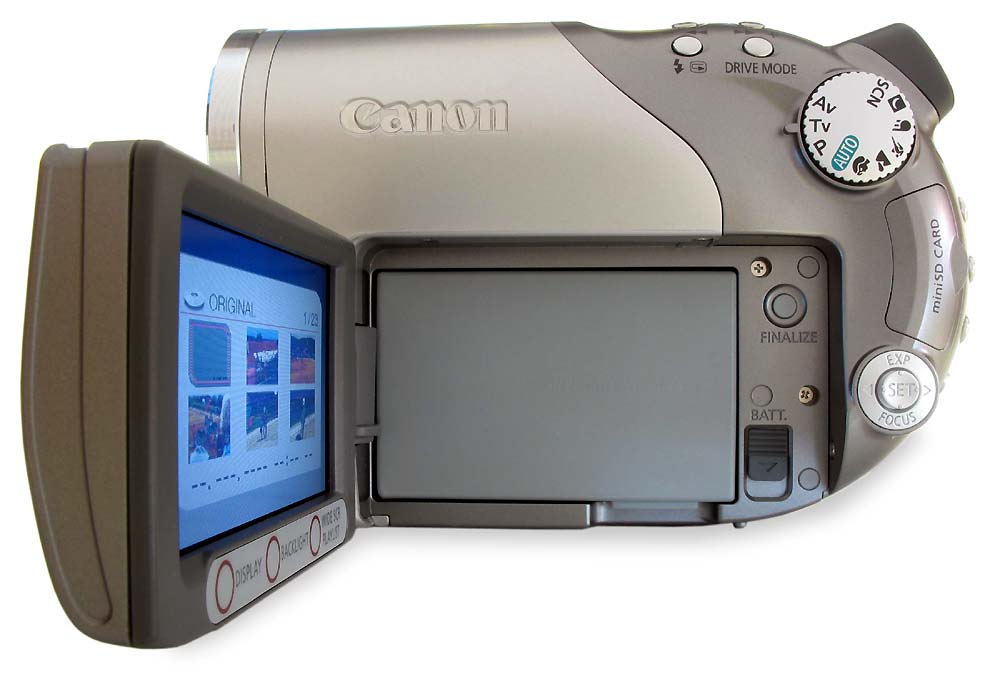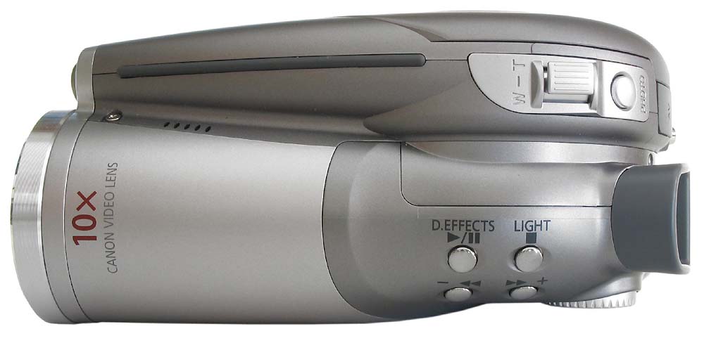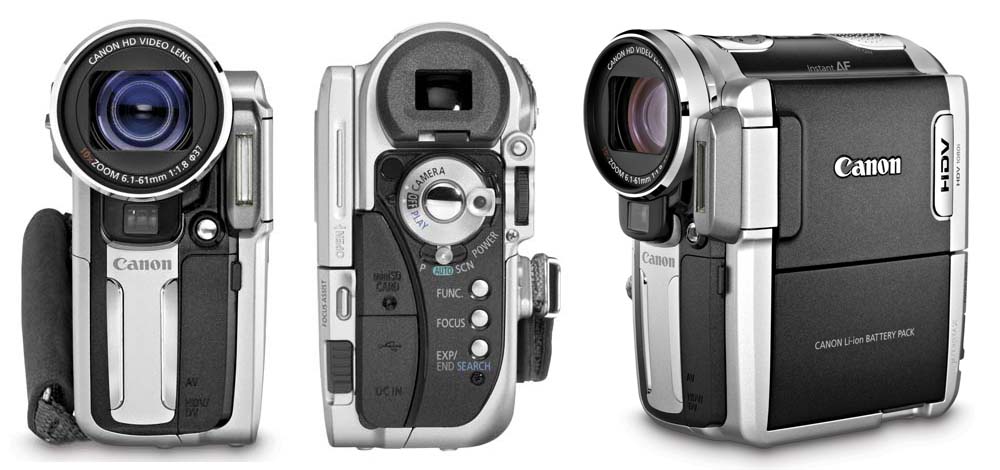 Nejvyšší rozlišení v dosavadní historii DVD formátu (CCD 4,3MPx s úhlopříčkou 1/2,8"), optika nejrenomovanější firmy ve foto-oboru, 10násobný motorový ZOOM (44,5-445 mm ke kinofilmu), širokoúhlý výklopný 2,7" LCD a barevný širokoúhlý hledáček 0,33" (oba s celkem 123kPx), vestavěný slot na mini-SD-karty pro foto, PLNÝ (!) širokoúhlý formát videa 16:9, maximální rozlišení foto-režimu až 2.304 x 1.736 bodů, kompaktní rozměry (Š x V x H je 60 x 87 x 126 mm) a hmotnost 480gramů budiž základním výčtem parametrů této krásné mašinky. Rozšíříme-li záběr předchozího souvětí, vyjmenujeme ještě procesor DIGIC DV s oddělenými cestami zpracování videa a fota, vestavěný blesk a LED-světlo, průměr závitu na optická příslušenství 37 mm nebo krásný a kompaktní design. Budeme-li ale chtít vývojáře aspoň trošku vyplísnit, všimneme si pravosti plastové očnice hledáčku, speciální AV-zdířky bez možnosti universální náhrady, absence mikrofonního vstupu anebo třebas vkládání AKU do prostoru pod LCD-displej bez obvyklé možnosti dokoupení (např.) 3 různých kapacit…
