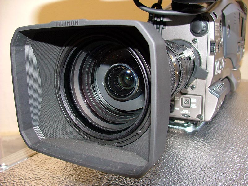 Pusme se do naší obryně technickými parametry. Tři snímací CCD-čipy s úhlopříčkou 1/2" mají udáváno 440.000 efektivních pixel každého. Systém výměnných (nasazovacích) objektivů má bajonetový úchyt a nám zapůjčený stroj má zmiňovaný typ Fuji s clonovým číslem F1,4 až F16 a manuálními prstenci ostření i přibližování záběrů. Jak je snad patrné i ze snímků, na boku objektivu je připevněn díl s kolébkou transfokátoru a zápěstním řemínkem. Odezíráme-li dále z technických dat laikům (snad nevídaně) zajímavých, zjišujeme absenci (!) stabilizátoru obrazu, která bude vzhledem ke konstrukci a držení kamery nejspíše pochopitelnou a tolerovatelnou. Nastavení rychlosti závěrky se tu dá provádět v rozsahu 1/6,25 až po 1/10.000 vteřiny a údaj o citlivosti ve slabším světle (0,2lx) je doplněn způsobem nastavení, totiž funkcí LOLUX, o níž je známo, že dokáže natáčet opravdu skoro potmě (zisk až 30dB). A aby těch neamatérských znaků nebylo málo, mašinka samozřejmě nemá (podobně jako jiné profičky) jinou rychlost než SP, přičemž na velký formát DV-kazety dokáže nahrát až 276 minut (jmenují tu kazetu LA-DV276PRO); a taktéž postrádá logicky např. slot na paměovou kartu…