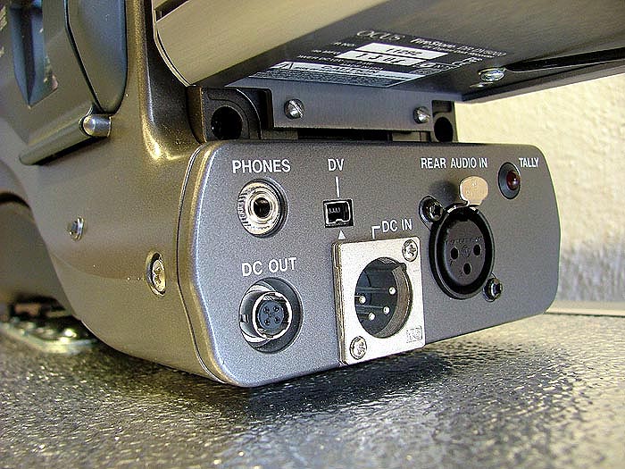 Dobře nahmatatelné voliče nejrůznějších funkcí coby stříbrné páčky jsou hlavně vpředu pod objektivem a vlevo dobře patrny. Obrovský průměr hledáčkového okuláru ukrývá hranol, za nímž je v pravém úhlu k "tunelu" okuláru umístěn černobílý hledáček, jenž nejspíš vůbec není LCD-displej, ale klasická stará dobrá obrazovka. Tak tady bychom už určitě uznali občasné připomínky, že černobílý kukuč může mít jakýsi znak profesionality, že ano. Jinak se tu dá vidět i detail posuvného mechanismu hledáčku s mikrofonem do boků i vpřed/vzad. Nakonec je ale i na této krasavici obvyklý výklopný LCD-panel, s neobvyklejší úhlopříčkou dneška: 2,5". Předsunutý a už jednoznačně externí mikrofon v solidním uložení, profesionální verze některých konektorů vzadu, mezi kterými se DV-rozhraní IEEE1394 jaksi stydlivě krčí a na každém detailu pomyslné potvrzení o (nikoli amatérském) zařazení videokamery. Ono ostatně i naše nedávno zveřejněné srovnání (ruku, jež držela XL2, jsme smázli) s nemohutnějším strojem maloobchodní nabídky napoví, že popisovaná věc je BIG-BIG…
