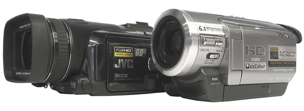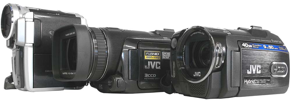 Srovnání s Canonen HV10 a JVC MG575 (Klikni pro zvětšení)Tradičním odstavcem odkazů k souvislostem (v těchto stránkách) nemohu nezačít. S rozvojem digitálních technologií v oboru se mezi páskové kazety postupně prosazují disková (od roku 2001) i kartová média (od r. 2002). Logickým vyústěním vývojového trendu může být pro mnohé právě nedávný nástup pevných disků, s kterými přichází velmi úspěšně v roce 2005 japonský Victor. Ale známé iniciály JVC nejsou mezi průkopníky spotřební elektroniky označením žádného nováčka: už o rok dříve vyrukoval Victor se svou ideou prcků na paměové karty MC200 s jedním CCD a pokračováním v zajímavém tříčipu MC500, jehož recenzi jsem tehdy v duchu blbnutí nazval Zázrakem na druhou. A přestože bych se dnes měl možná vyblbnout s logikou povídání o MG505 Zázrak na třetí pokračováním Zázrak na Entou - nebo tak nějak - recenzním nadpisem jsem chtěl oklamat jakýmisi mimikry naše čtenáře a vnutit jim zdání serióznosti těchto stránek (:-D). Připomeňme si diskové počiny Sony SR90, miniatury SR30+50 a SR70 či HDV-prcky HV10 a HC3; a hurá na Sedmičku…