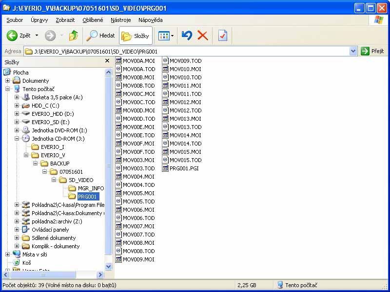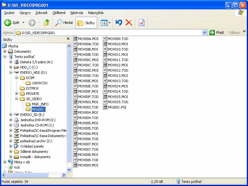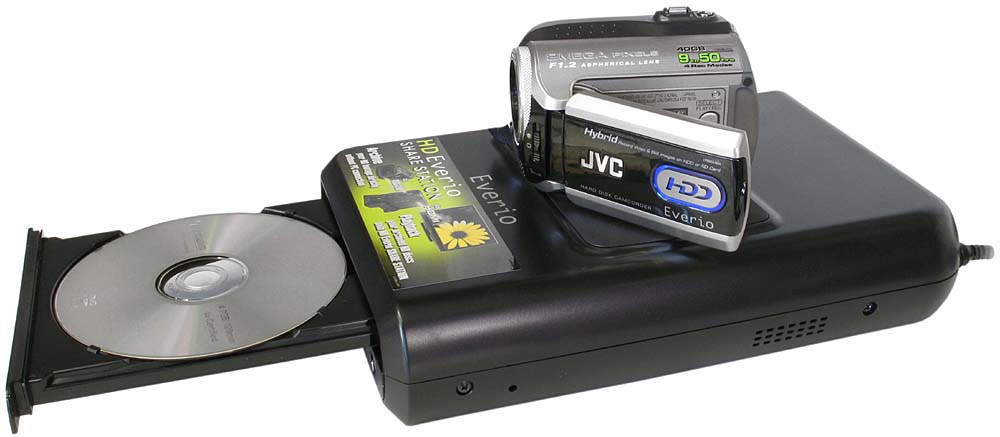 Detailní pohled na JVC HD7 shora (Klikni pro zvětšení)Několik postřehů z (krátké) praxe. "Hrál" jsem si s brunetkou z Victorovy stáje přes 14 dní (do naší firmy dorazila prvnička 2. května 007) a stejně jako druhdy popisovanou HV10 jsem ji brával pečlivě zabalenou do bublinek na cyklistické výlety a natáčel v různých podmínkách i různém osvětlení kratší i delší sekvence. A (zatím) zřejmě jediné pohodlné řešení, co s videem po zaznamenání dál, naznačily předchozí řádky (nákup VD40), ale problematika snese pár vět navíc. Zkoušením přehrávání videí na disku vypáleném VD40 jsme odhalili mj. jejich (ne)kompatibilitu s domácím počítačem (v něm BSP vyrábí jakési kostičkové horory s patřičnou zvukovou kulisou) i stolním PC na prodejně: např. WMP je přehrává normálně s občasným cuknutím podle výkonu PC, ale vypalovačka samozřejmě prostřednictvím HDMI tlačí videa v plné náloži i do velké LCD-televize (HD-ready záhodno). Spuštění v PC mimochodem probíhá např. tak, že kliknu na DVD-mechaniku - obsah HDD kamery je shodný s vypáleným DVD-diskem - a z adresářů EVERIO_I a EVERIO_V vyberu ten druhý; po čtvero otevřeních dalších najdu soubory s příponou TOD, jež představují samotné klipy. DVD-rekordér (mám Panasonic DMR-E65) mi po zkoušce čtení vypáleného DVD-disku suše oznámil UNSUPPORT a bylo vymalováno…
