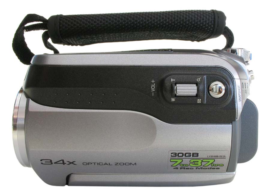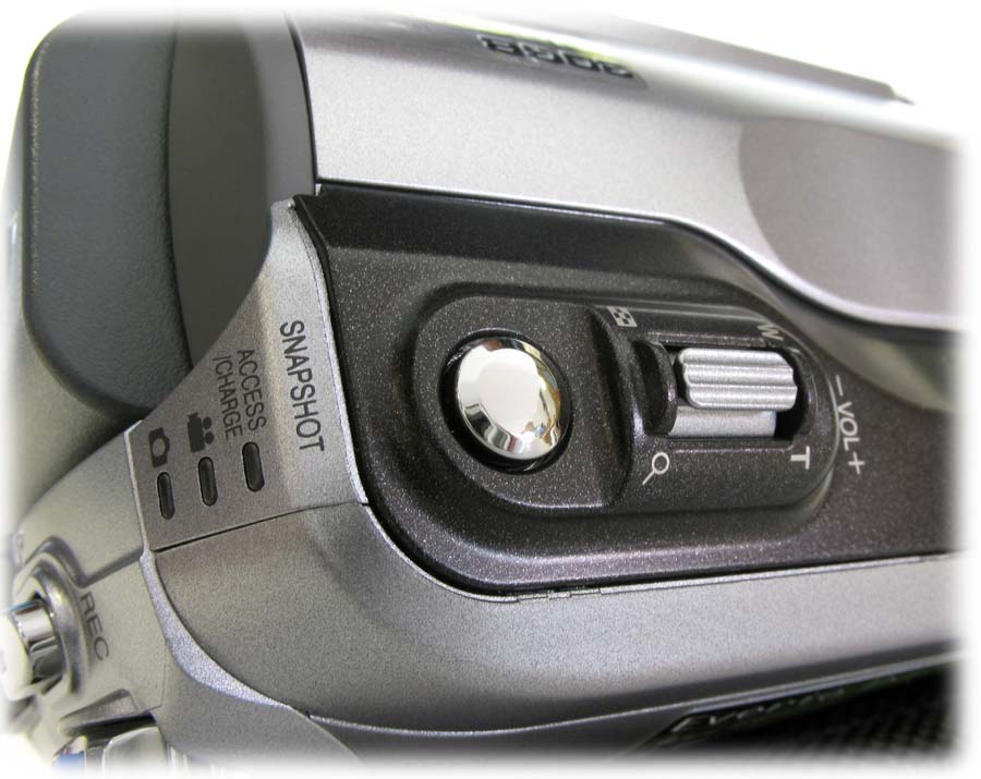 Ergonomie videokamer se oproti předešlé modelové řadě nijak dramaticky nezměnila a hlavní ovladače najde kameraman na místech, kde by je očekával (Start/Stop tlačítko nahrávání, ZOOM atd.). Změnu doznal hlavní vypínač, který se přesunul z horní části až k nahrávacímu tlačítku, stejně jako jsou takto vybaveny kamery Sony a podobně tedy nabízí i 2 polohy vypnuto/zapnuto a na jakési pružince k tomu volbu režimu nahrávání videa či fotografování. Co mě však velmi udivilo, chybí zde volba režimu přehrávání. Ta má svoje vlastní tlačítko ukryté pod LCD panelem a díky tomu není možný přímý přístup do přehrávacího režimu. Kameru je nutné v první chvíli zapnout (nahrávací režim) a následně přepnout zmíněným tlačítkem do režimu PLAY. Páčka transfokátoru (ZOOM) vystupuje nad tělo kamery a funguje jako kolébka doleva/doprava, nikoli jako bývalý posuvníček, což považuji za další drobný klad tohoto stroje. Na Start-Stop tlačítku a tlačítku pro fotorežim se nic nezměnilo…