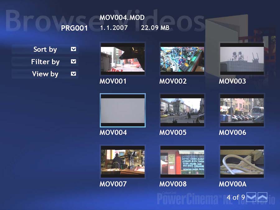 Vrame se teď k propojení kamer do PC. Jak jsem uvedl, oba modely nabízí spojení přes USB port a v počítači se pak hlásí jako výměnný disk, resp. dva výměnné disky (HDD a SD-karta). Záznam je pak možné kopírovat na pevný disk počítače přes standardního správce disků nebo použít program dodaný s přístrojem. Každá videosekvence se uloží jako klip s příponou .MOD, statické snímky mají příponu .JPG. Bohužel ani na jedno médium nelze kopírovat zpět soubory z PC - tedy není možné použít běžně disk pro přenos dat coby velký flashdisk, i když tuto vlastnost lze snadno obelstít pomocí čtečky SD-karet a následného zkopírování ze slotu na HDD. Firma JVC dodává ke kamerám CD s programy pro práci s videi (Cyberlink Power Cinema, Power Producer a Power Director) i fotografiemi (Digital Photo Navigator). Program Power Cinema NE nabízí možnost přehrávání videí i fotografií přímo z videokamery, jejich základní výběr a kopírování na pevný disk PC, případně vypálení na DVD. Program Power Director umí editaci záznamu vč. titulků, přechodových efektů či dozvučení zvukové stopy…