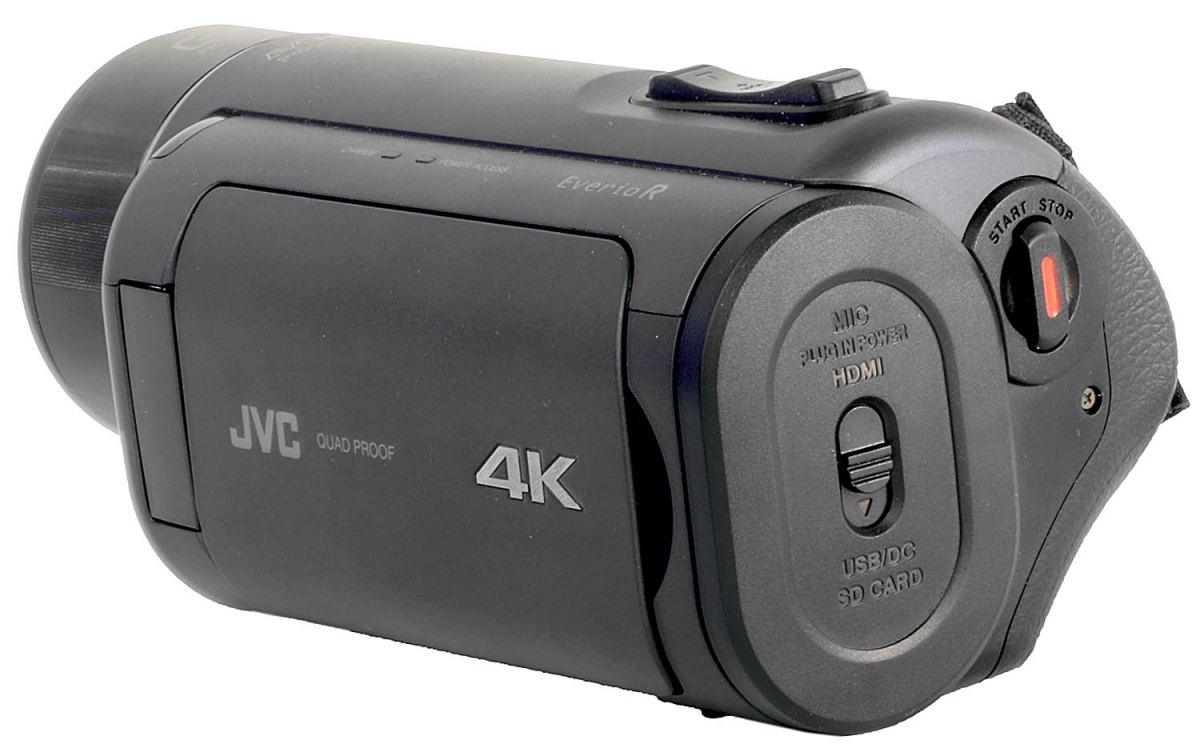 Videokamera JVC GZ-RY980 v přední perspektivě