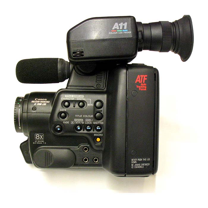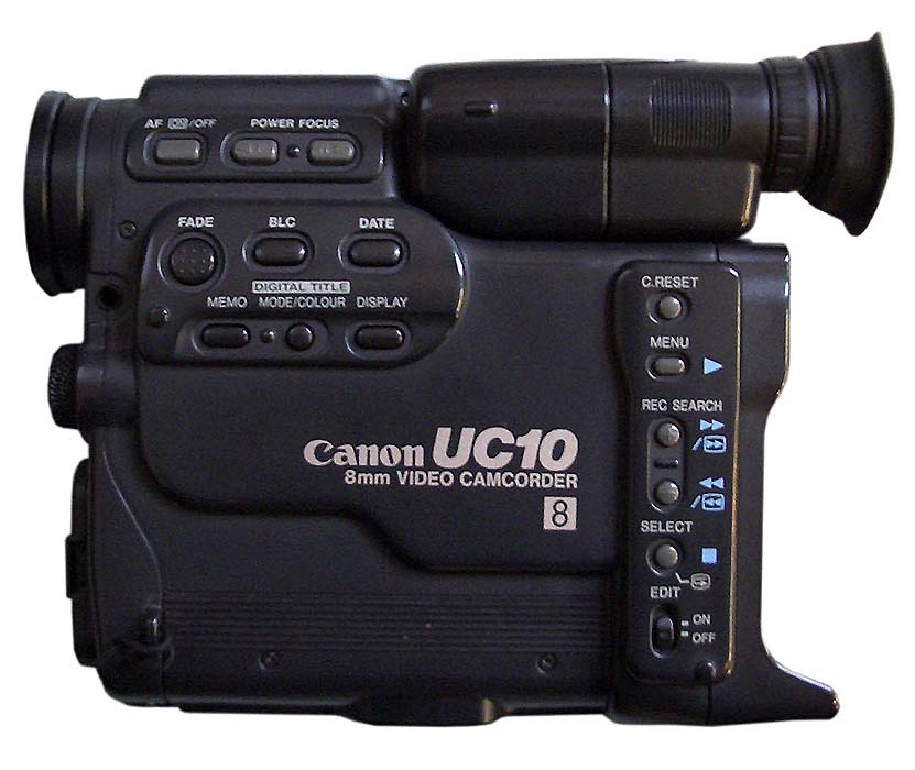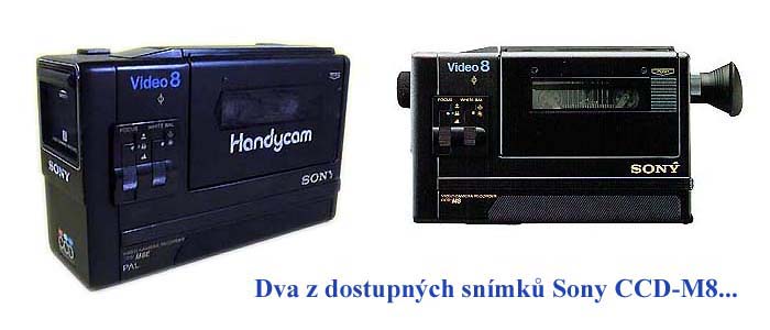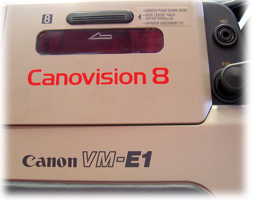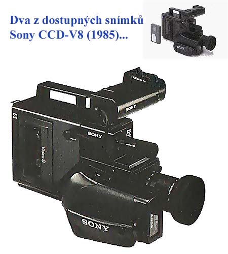 A jsme zpátky u videokamer. Firmy Sony a Canon nabádají po zdárném ukončení vývoje v roce 1984 k volbě 8milimetrové pásky, a to přístroji uvedenými (viz též dále) snad jen měsíc od sebe v roce 1985. Panasonic a JVC kontrují ve stejném roce kompaktní kazetou VHS-C, do níž se ještě dlouho poté vešlo "jen" 30 nebo 45 minut pásky (v režimu SP). A právě z oné nejstarší prehistorie oněch nejpionýrštějších začátků videokamer - jak jsme je znali donedávna - vlastníme hned dva přístroje Canon. Model VC-20 s přenosným záznamovým zařízením (tzv. VHS-portejbl) je z února 1984 a masivní VM-E1 coby první 8mm-Camcorder firmy Canon pak z října 1985. Typ E1 byl dán na trh takřka současně se zcela jinou designovou představou v podobě Sony CCD-M8, jemuž zřejmě předcházel ještě klasičtější CCD-V8 (6xZOOM, 117x193x344 mm a 2,3kg), a to pravděpodobně těsně před zmíněným typem Canon VM-E1. Nedokonalost některých obrázků přístrojů z prehistorického období - tedy co se začátků videokamer Sony a ostatních týká - je dána logicky tím, že mašinky nemáme fyzicky k dispozici a sháníme je (nabídněte)…