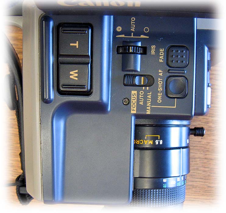 Přestože videokamer s oddělenou snímací a záznamovou částí (videorekordérem přes rameno) byla celá řada, přehoupněme se přes ně jedním z (pro nás) nejjednodušeji dostupných modelů, tedy co se fyzické hmatatelnosti týká. Canon VC-20 coby velký tzv. ramenní přístroj (208x218x331 mm a 2.5kg) je osazen snímačem SATICON, čB-hledáčkem, na tehdejší dobu vcelku dost výkonným objektivem s 8násobným přiblížením a zvláštním teleskopickým mikrofonem; a jak bylo v těch dobách celkem často zvykem, mnohé součásti se daly rozpojit nebo připojit jako stavebnice. Držení zápěstním řemínkem vpravo před objektivem obsahuje i ovládání transfokátoru, podobně jak to má uspořádáno další vyobrazený typ VM-E1. Tento první Canovision8, coby jakýsi napůl ramenní stroj s demontovatelným madlem k přenášení už má - přes své míry (143x149x333 mm a 1.980g) - evidentně velmi podobné tvary s běžnějšími videokamerami a i výbava by mohla být dnešním fandům oboru srozumitelnější. Půlpalcový snímač, automatické i ruční řízení ostření a ZOOM-u (6x), manuální řízení clony, zatmívačka (FADE) nebo LP-režim a další vymoženosti tohoto BIG-stroje budiž důkazy předchozího tvrzení…