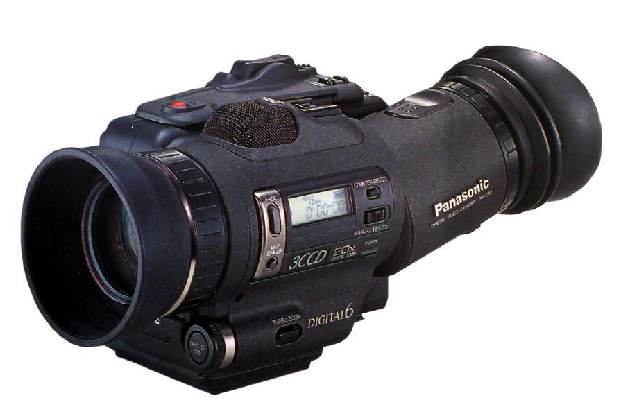 Japonský MATSUSHITA - respektive jeho (kdožvíproč odnož) Panasonic - se od počátku podílel na vývoji a výrobě maloobchodních videokamer velmi aktivně. Přestože autor tohoto textu nemá k dispozici potřebné detaily pro echt dokonalé informace o problematice, (snad) čtenáři naznačí alespoň něco. Panasonic se totiž připojil ve druhé polovině 70. let ke kolegovi Victorovi (JVC) a už od roku 1976 s ním táhnul (tehdy úspěšnou) loď půlpalcové pásky VHS. A přestože opravdovou historii videokamer VHS/S-VHS z prvopočátků jejich éry nemáme zmapovánu nijak detailně, můžeme nabídnout obrázky a data některých strojů z oné zlaté doby VHS a Super-VHS, jež je mnohými nadšenci prodlužována na sportovních kláních nebo společenských akcích dodnes. Obří ramenní mašina NV-MS1 byla jedním ze symbolů začátku 90. let, alespoň co se vnímavosti tehdejších profíků týkalo. Svým CCD-snímačem o velikosti 1/2" a počtu 420.000 bodů by mohla leckteré dnešní krasavici konkurovat, ale také pokrok v kvalitě snímacích senzorů by pochopitelně měl na pomyslné misce vah své body (výrobci přece nespí :-D)…