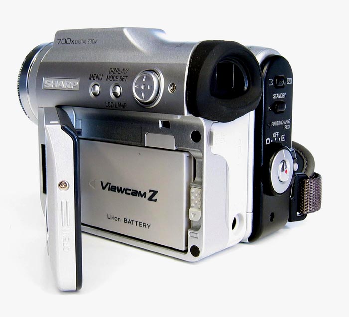 Vsuvka PJ: Elektronický velikán Sharp býval nejméně do poloviny devadesátých let opravdu velkým a zajímavým producentem (tehdy pouze) analogových videokamer všemožných formátů. Drobné náznaky slavné historie firmy může čtenář nalézt v našem prvním a částečně i druhém dílu "Specialit z historie…". V loňském červnu sestavil kolega JR drobný přehled novější produkce už klasičtějších tělíček s otočným kloubem a o Vánočních svátcích 2003 zde čtenáři mohli nalézt poněkud komerční recenzi na dvě zajímavosti s největším přiblížením. A v letošním červnu sepsal opět kolega JR (jenž ostatně pokračuje dále už sám) přehled videokamer značky Sharp pro rok 2004. Stejně jako loni i dnes je u firmy Sharp vcelku netradiční kloubové rozdělení kamery na dvě časti. Jde o kazetovou mechaniku se základními ovládacími prvky - za kterou přístroj držíme - a na část s objektivem, LCD panelem, hledáčkem, konektory pro spojení kamery "se světem" a paticí pro AKU. Tyto dvě části jsou spojeny zmiňovaným kloubem. Zdá se, že firma Sony se mohla právě u kolegiální firmy Sharp (?) inspirovat a přišla u poslední novinky DCR-HC1000 s vybavením právě takovýmto otočným patentem…