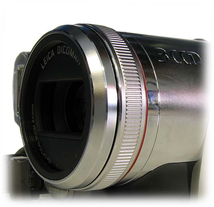 Už samotný objektiv má proti o porci levnějším kolegyňkám několik odlišností, které nepřehlédneme! Tou první je určitě masivnější provedení s průměrem závitu příslušenství 43mm (GS150 má 37mm) a také poměrně široký prstenec manuálního ostření za jeho obroučkou. Hlavní finesa je samozřejmě ale uvnitř těla objektivu: optický stabilizátor obrazu má nepochybně původ v kolegově licenci od firmy Canon, ale to nic nemění na faktu, že NV-GS250 se řadí k té menšině přístrojů (v několika letech zpět) výrobce, jež opravdu dokáží pomoci záběr účinně stabilizovat. Samotný objektiv s obvyklým logem zn. LEICA DICOMAR má schopnost "jen" 10násobného optického přiblížení a volitelně nadto 20násobek nebo 500násobek digitálního zvětšení. čísla k těmto údajům jsou 2,85-28,5 mm a pro přepočet na kinofilm platí 43,8-438 mm u videa a 41.3-413 mm u fota (F1,6-2,8). Rozsah závěrky je 1/50-1/8000 vteřiny pro kazetu a 1/2-1/2000s pro kartu. Suchých číselných údajů bude po vyčerpání většiny důležitých konečně méně, postupujme tedy při naší prohlídce do dalších pomyslných místností zkoumaného objektu…