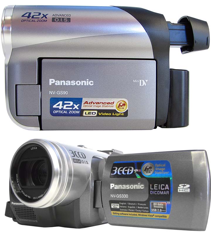 Ještě pár slov PJ: "Ty tam jsou doby výkonných a poutavě osazovaných kamer s tzv. SD-rozlišením DV-PAL. A ani úspěšný člen hlavní čtyřky producentů videokamer nemá po strojích se třemi snímači této firmy v podobě větší GS400, menší GS500 a pak i levnějších sester GS300 a GS320 do nabídky nic k serióznímu pokračování. Odkažme zde tedy ještě na předchůdkyni Devadesátky GS80 a nechme pokračovat Jendu. Panasonic totiž neměl na našem webu místo od loňského podzimu (!)..." Jako jediný z hlavního kvarteta pro aktuální rok 2008 ponechal v nabídce kameru se záznamem ve standardním rozlišení na kazetku, která nepatří do úplného low-endu. Tím samozřejmě nemyslím NV-GS90, která má jeden snímací čip o úhlopříčce 1/6 palce s počtem 800.000 bodů, ale vyspělejší GS330, ve které se tyto čipy nacházejí hned tři. Obě kamery mají navíc optickou stabilizaci, což hlavně nižší model GS90 kapku povyšuje nad její přímé konkurentky. Výhodou páskových kamer mini-DV stále zůstává nejmenší komprese ze všech záznamových medií a tím i nejvyšší kvalita záznamu z běžných (amatérských) způsobů záznamu. Tuto výhodu však pro většinu uživatelů převyšuje relativně obtížná manipulace s kazetami a zdlouhavé stahování do počítače v reálném čase nahrávky…