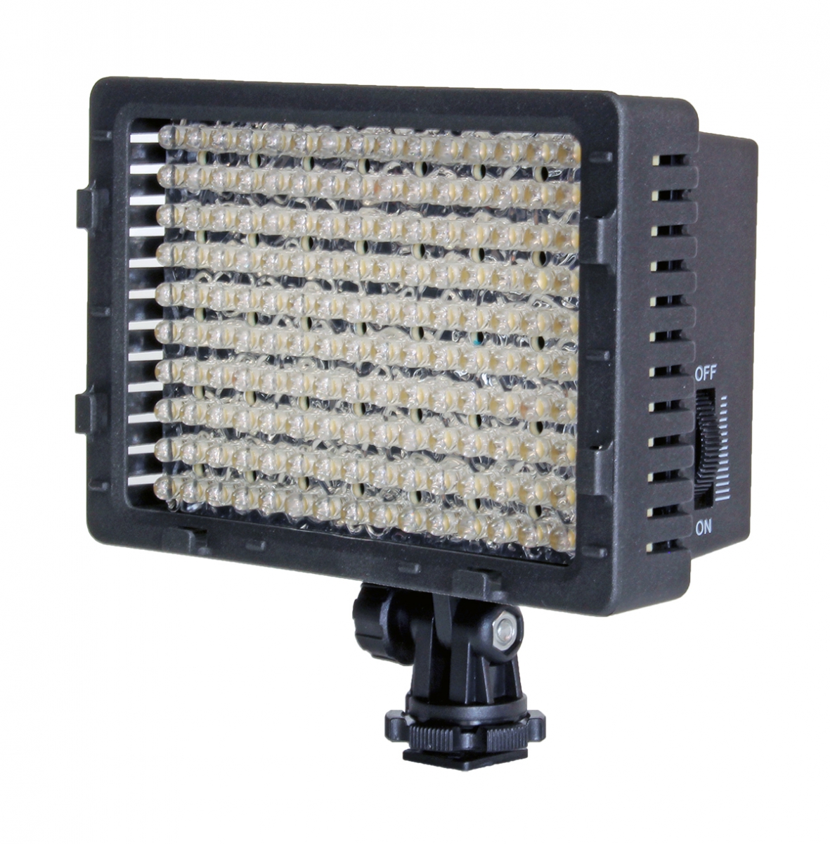 Předposledním dnes představeným modelem světla je známá "bytelnost" CN-160. Jak napovídá opět označení, je tu do roštu poskládáno 160 LED-diod s vysokou svítivostí. Maximální příkon je udáván jen 9,6W, při napájecím napětí v rozsahu 7,2 až 8,4 V. Napájení představuje oproti výše popsaným modelům další stupeň vstřícnosti kameramanům. Kromě šesti tužkových článků (samozřejmě s možností nabíjecích) je možno vložit kteroukoli kapacitu s paticemi Sony NP-F a NP-FM, tedy nejtradičnějších uspořádání kontaktů videokamer značky. Udávané barevné teploty 5400K vs. 3200K, světelný tok 660lm, míry/váhy 141 x 150 x 62 mm a 440 g bez Aku...