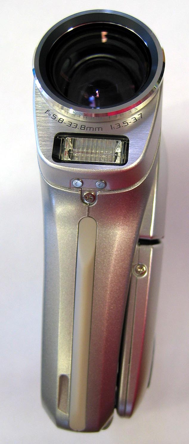 Sanyo XACTI zepředu: zaklapnutý LCD (Klikni pro zvětšení)