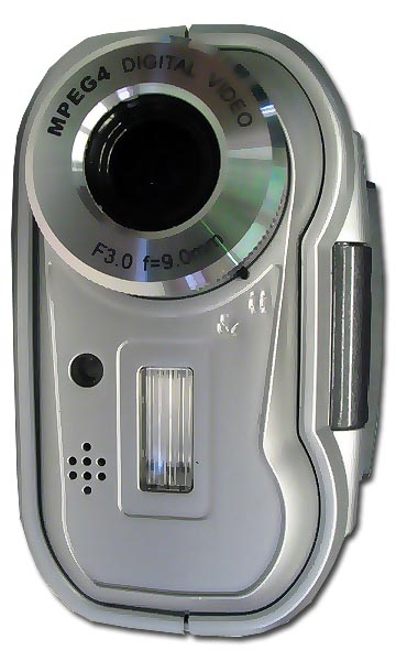 Míry a váhy M-DV5000 jsou opravdu mini-miniaturní: 86 x 68 x 40 mm a 110 gramů. Poněkud krkolomně výklopný LCD-panel (zatlačit do pantu a vytáhnout z uložení) má malou úhlopříčku jen 1,5" (metricky 38mm) a jeho vyklopením z těla mini-kamerky je celá akčnost vyčerpána: otočný kloub tady chybí. Hned na začátku popisování také připomeňme, že mašinka má vnitřní pamě 32MB, takže je k použití i v případě zapomenutí paměové karty doma. Přední část vyplňuje prakticky úplně objektiv, blesk a vedle něj (pravděpodobně...) senzor vnitřní elektroniky a mikrofonní štěrbina. Objektiv DV5000 - máme-li tento průzor na snímač skutečně takto nazývat - je dle výrobce sestaven z 6-ti skleněných čoček a nese coby základní údaje clonu F3.0 a ohnisko f=9.0mm - to má odpovídat 49mm v porovnání ke kinofilmu. Na mini-objektivu je rýhovaný prstenec, po jehož pootočení se přístroj dá používat i na blízké záběry: v poloze Makro se udává minimální vzdálenost snímání od 30cm, zatímco poloha Normal má sloužit od 70cm do nekonečna. Zadní strana je vyplněna většími dvířky s odsouvacím vyklápěním na baterie (2xAA) a nikterak luxusně vyhlížející gumovou krytkou všech (tří) přípojných zdířek: pro USB- a AV-kabel a případná kontrolní (?) sluchátka, jež budou samozřejmě nepostradatelná hlavně při poslechu hudby…