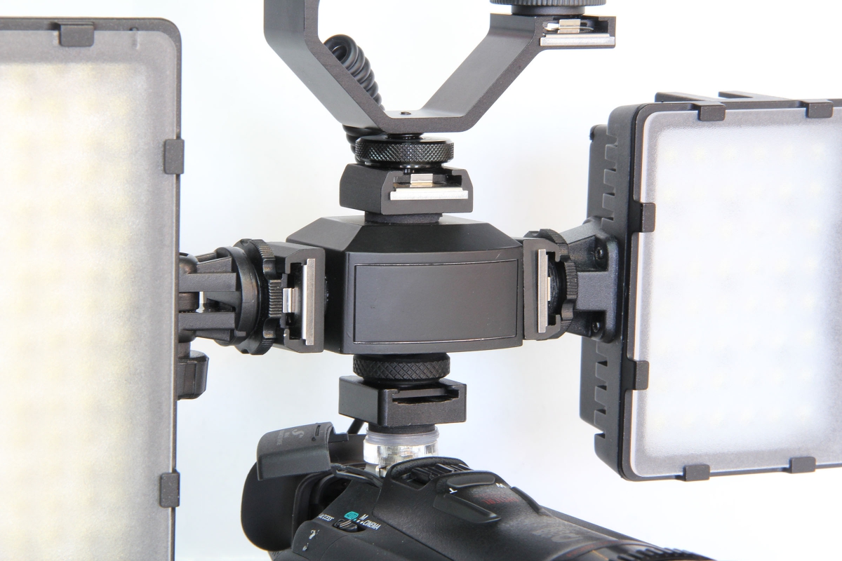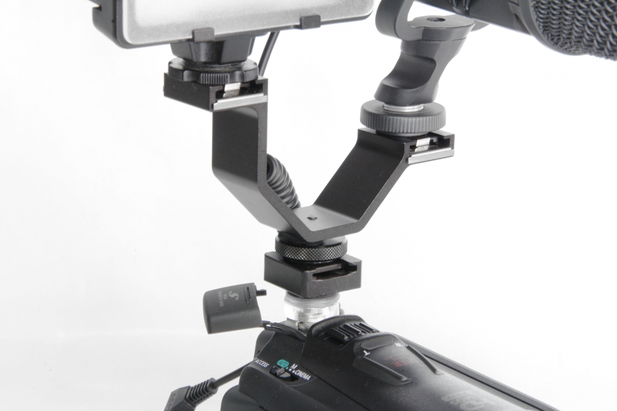 Tady se do aktuality vložím (PJ) znovu. Původně jsme měli v úmyslu psát pouze o jedné zajímavosti, ale protože se nám toho na povětsném redakčním stole (nebo spíše stole v prodejně) sešlo více a jaksi jsme se namlsali, rozhodli jsme že necháme pomyslně namslat i oko čtenáře-fanouška našeho oboru. Zveřejňujeme tedy hned několik fotek nové rozdvojky pro doplňky, která by měla pomoci potřebným kameramanům v celičké republice - tedy těm, kteří potřebují nenásilně (bez "paroží") upevnit do jedné botičky vícero doplňků typu světlo nebo mikrofon. Rozdvojku pro dvě takové libůstky je možno použít jak u videokamery, tak logicky i u fotoaparátu a současné elegantní řešení pro (například) externí miokrofon a světlo zároveň je na světě. Mnozí se asi ptají, cože by se to dalo připevnit do botiček ještě? Cosi z praxe: logickým, ale ne příliš častým, může být potřeba připevnění většího LCD-monitoru, byli tu (na naší prodejně) i uživatelé, kteří dávali do botičky velké kamery malý typ s funkcí golfového úderu, zasouvali do ní fórichtuňk pro uchycení externího harddisku a podobně. Holt - svět kamaramanského řemesla je rozmanitý. A hned následující obrázek je o další zajímavosti, jejíž eventuálníé obchodní úspěšnost si netroufáme odhadnout: