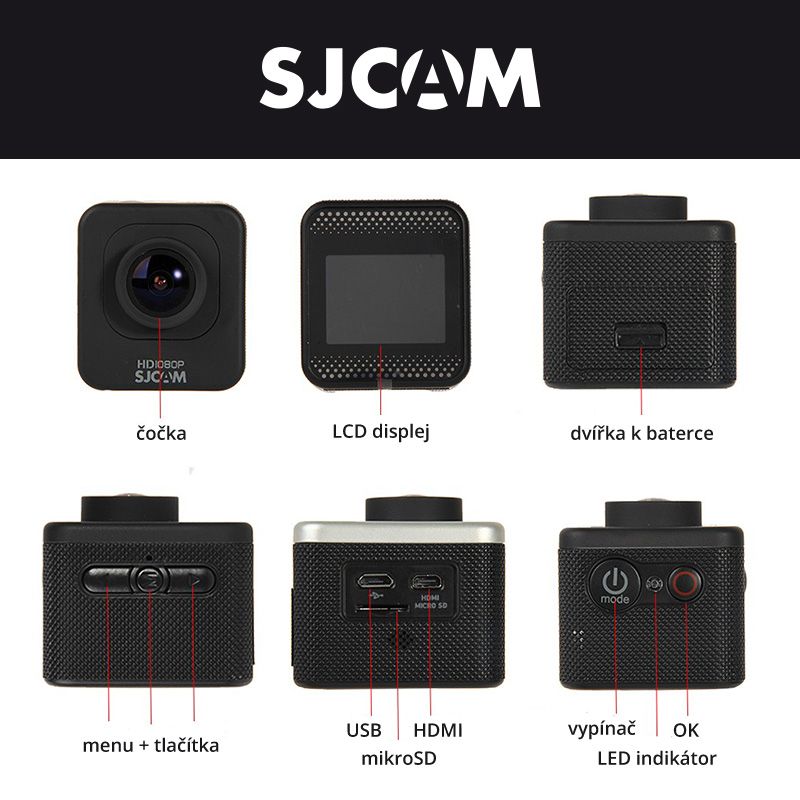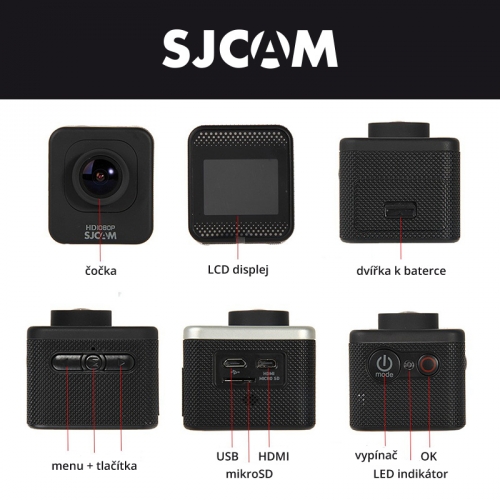 Prvním levnějším modelem je kamera SJCAM M10 CUBE, jež nabídne záznam ve Full HD 1080p (1920x1080) při 30 snímcích za vteřinu či HD 720P (1280*720) a 60 sn. Dále širokoúhlý 170° objektiv, vestavěný 1.5″ LCD displej a záznam na Micro SD karty (max. 32 GB). Formátem záznamu je MOV, maximální kvalita fotografie pak 12 MPx (4032 x 3024) s volbou 1 snímek / časovač / sekvenční snímky. Výdrž na dodaný akumulátor je cca 90 minut. Zákazník obdrží následující doplňky, přičemž jednorázové samolepící držáky nevrací, ale je nutno je přikoupit...: