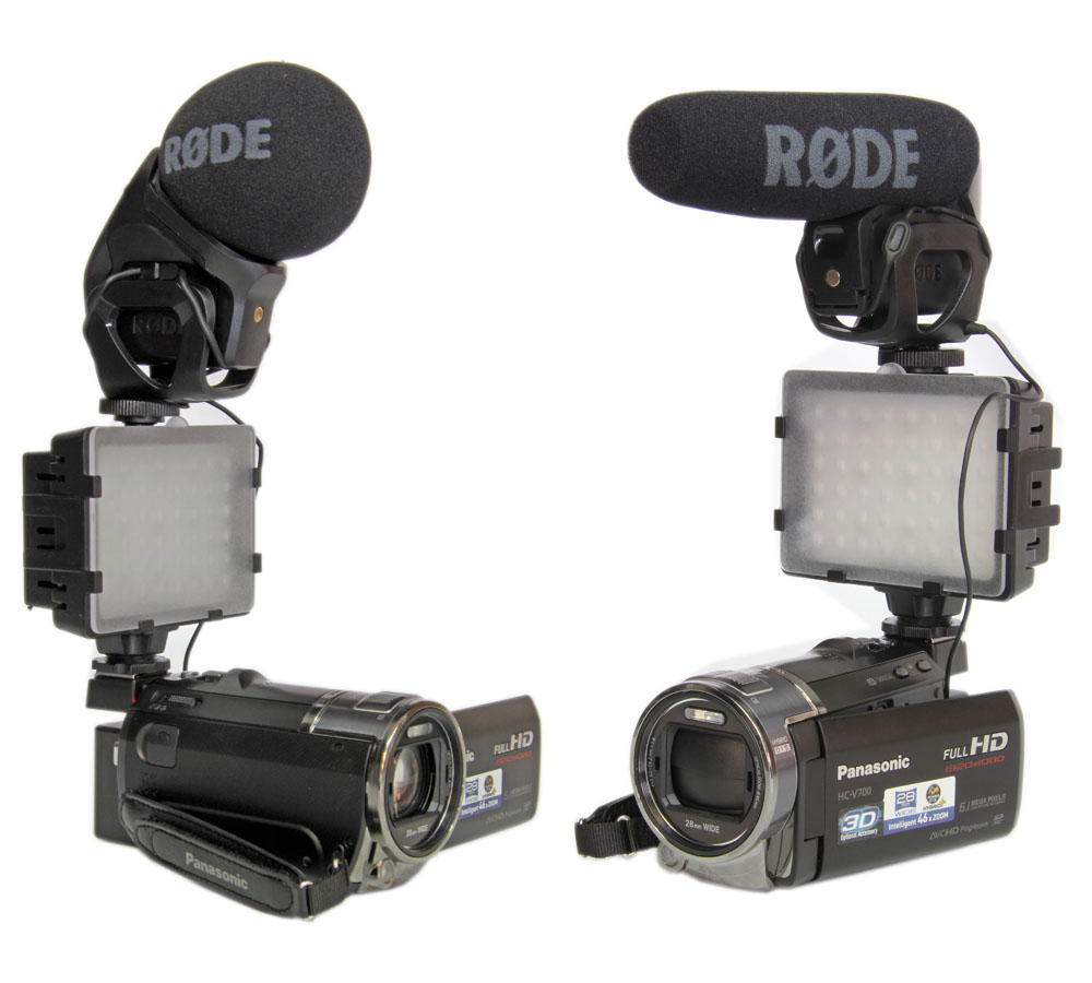 Ošacena videokamera HC-V700 ó LED světlo a videomikrofon (Kliknutí zvětší)Kvalita samotného záznamu je při využití nejvyššího možného módu 1920×1080 a 50p na velmi vysoké úrovni. Při dobrém osvětlení scény ostrost a detaily obrazu doslova nadchnou, stejně tak potěší velmi zajímavá šířka záběru (výše zmíněných 28 mm v přepočtu na kinofilm). Oba tyto klady HC-V700 se daly očekávat, zvědaví jsme však byli hlavně na záznam v nízkém osvětlení. Ani zde Panasonic nezklamal. V porovnání s řadou kamer Canon Legria HF M5..., kterou řadíme v této cenové ("nižší-střední") kategorii na úplný vrchol, co se týče citlivosti na světlo, sice „HáCéVé-sedmistovka“ stále trochu zaostává (drobnou demonstraci naznačuje i naše Galerie hned o další odstavec níže), ale rozhodně se za kvalitu nemusí v japonských továrnách pana Konosuke Matsushity stydět...