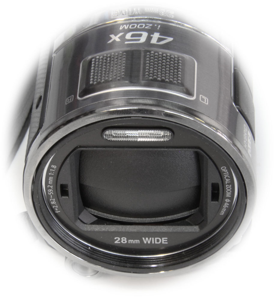 Detailní pohled na objektiv HC-V700 (Kliknutí zvětší)Velké rozlišení snímače a přítomnost blesku nabádá k použití videokamery jako fotoaparátu. Panasonic díky značnému využívání tříčipové technologie u vyšších modelů nikdy nepatřil mezi foto-kamerami ke špičce a nezařadil se do ní ani s představením HC-V700. Ta sice pořizuje fotografie v maximálním rozlišení 6,1 megapixelů (celkem tedy 3024 x 2016 bodů), ale jejich kvalita je průměrná. Rozhodně však kamera na rodinném výletě může nahradit běžný kompakt a umožnit tak vzít sebou pouze jedno univerzální zařízení, kterým lze natočit dostatečně kvalitní video a pořídit slušné fotografie k prohlížení i na velkých LCD-panelech či jiných zobrazovačích. Jak jsme tu psali vícekrát - ne vždy je totiž možno stihnout vypnutí/schování (kamery) a vyjmutí/zapnutí (foáku) s nafocením požadovaného...