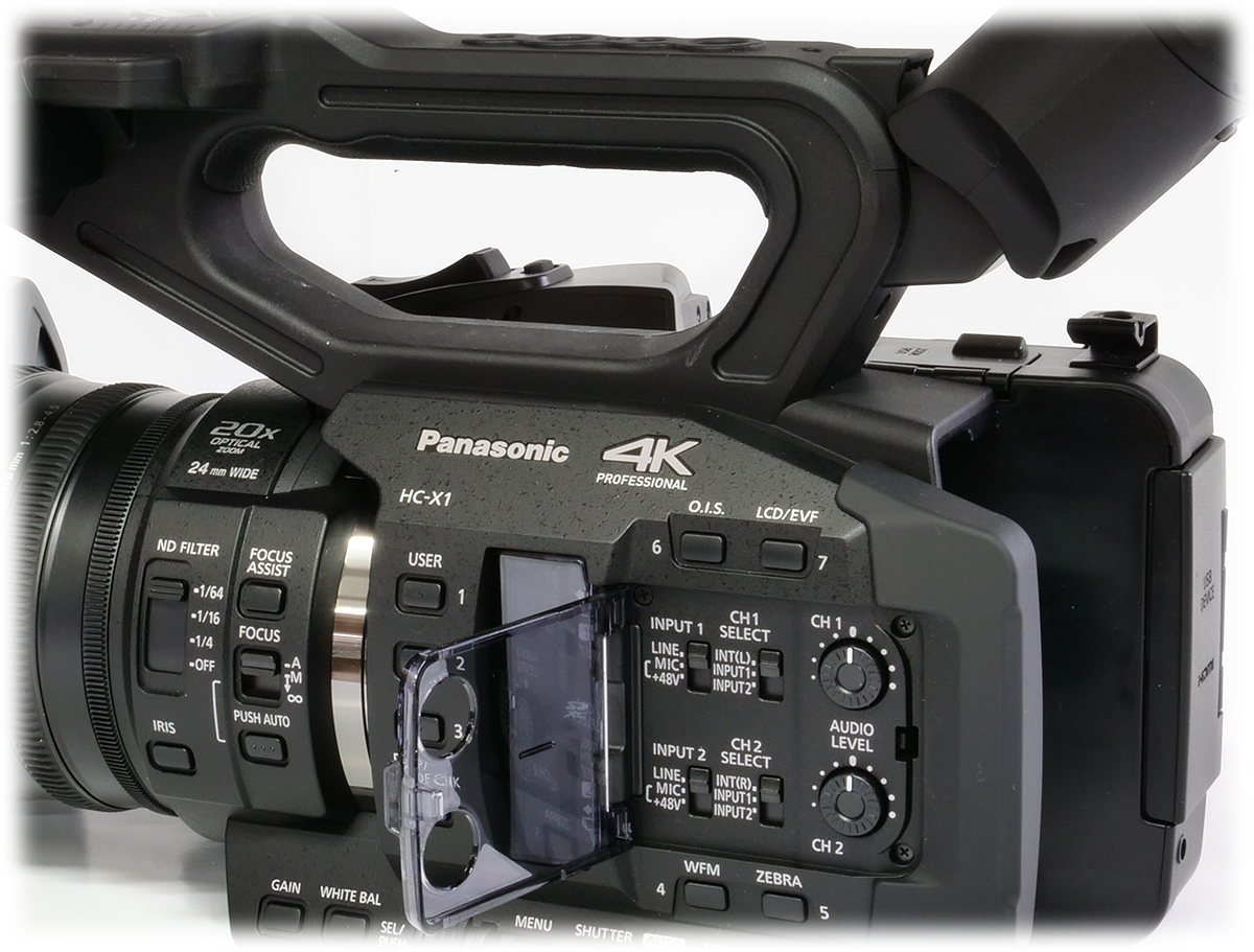 Videokamera Panasonic HC-X1 se zasunutým LCD Videokamera Panasonic HC-X1 s vysunutým LCD