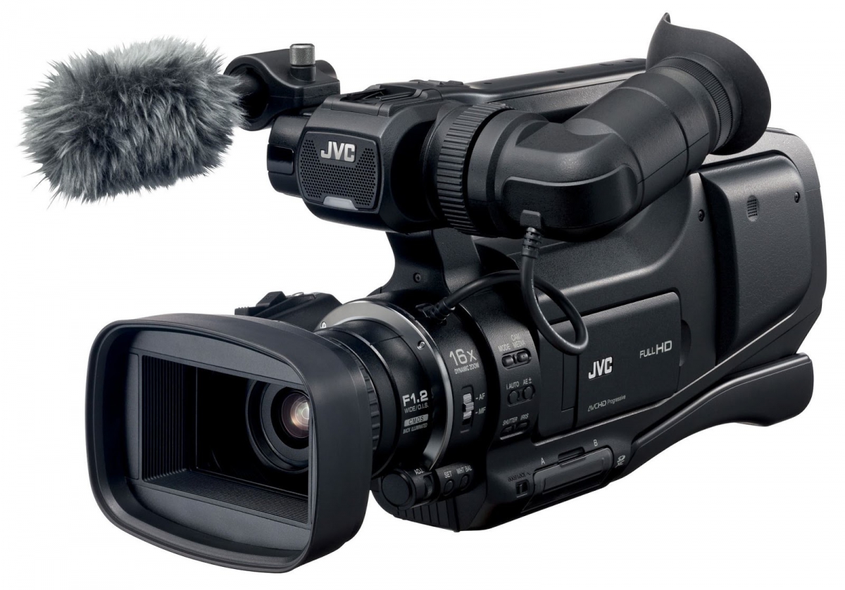 Profesionální videokamery Canon XF705 a XF405 u sebe Někdejší model profesionální kamery JVC GY-HM70... Nedávno představená profesionálka Sony HXR-NX100