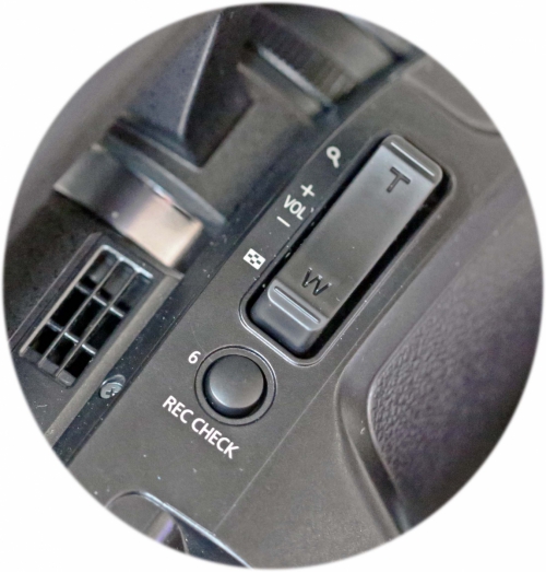 20NÁSOBNÝ optický ZOOM s rozsahem ohnisek 29,5 až 600 mm (to už známý přepočet ke kinofilmu 35mm, ale s poměrem stran 17:9). VELIKÁ sluneční clona na objektivu a podobně masivní gumová očnice na okuláru hledáčku: dva z dalších znaků pohodlí kameramana. Ne že by se clonám říkalo „pohodlí“, ale vždy pomohou účinně zabránit sklouznutí prstů do záběrů, když se kameraman chce „realizovat“ s manuálním prstencem, kameře dodávají JASNÝ punc profesionality a návdavkem v nich může být vestavěná důmyslná krytka objektivu. Vestavěný šedý ND-filtr (ovládání za objektivem), extra manuály BEZ nutnosti vyklápění LCD-panelu a celkem ŠEST uživatelských tlačítek USER: čísla 1-4, pořadí 5 a šestka (klik)…
