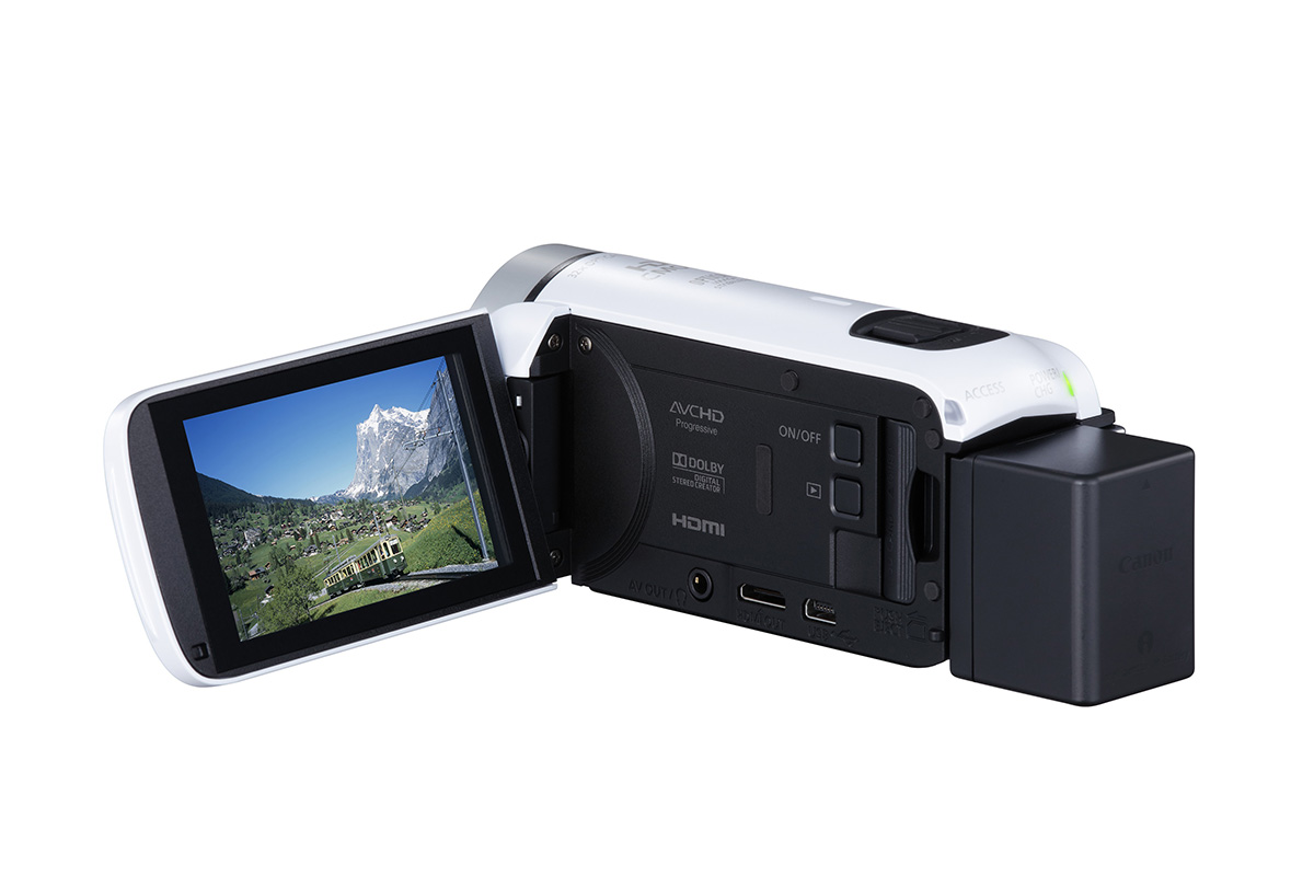 Videokamera Canon LEGRIA HF R806 je kompaktní miniatura v elegantním černé nebo „sněhově bílé“. Rozměry shodně s loňským základem 53 x 58 x 116 mm (Š x V x H) a hmotnost 235 gramů. Objektiv s plným označením Canon HD VIDEO LENS má 32násobný optický, dále 57násobný „výkonný“ ZOOM a nadto šílené číslo 1140násobku digitálního zvětšení. Ohniskový rozsah na dnešní dobu nevalných 32,5-1853 mm, ale ještě slabších 38,5-1232 mm při vypnutém výkonném zoomu (oboje jako ekvivalent vůči 35 mm filmu), což ani v rámci dané (levné) kategorie není nic moc. Porovnáme-li si ale například konkurentky vyšších řad fajnšmekrů Canon-Panasonic-Sony, museli bychom se doslova vyděsit z rozsahů ohnisek takové VXF990: 37-752 mm, ALE za 3,5 násobek pořizovací ceny. Jinými slovy: nijak obdivné nejširší „šíro“ amatérovi většinou vyhoví a objektiv z takových rozsahů zase vidí o kus dál. Snímač za sestavou skel objektivu má označení Full HD CMOS, úhlopříčně jde o „typ 1/4,85“ a celkem se na něm nachází 3,28MPx, z toho 2,07MPx je efektivních pro film i foto. Formáty záznamu jsou volitelně MP4 a AVCHD, datové toky a velikosti videí zmíním níže. Optický stabilizátor se jmenuje „Inteligentní IS s pokročilým dynamickým režimem“. Výklopný dotykový LCD má 3“ (7,5cm) a 230.000 bodů…