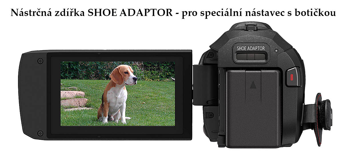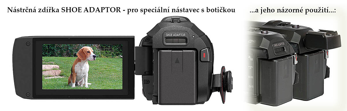 MIMOŘÁDNÝ doplněk tvoří nástrčná botička s "volitelnou absencí", přibližme si ji. Už v někdejší recenzi "střeďáka" Videokamera VX980 s otvorem pro nástrčnou redukciHC-V750 z roku 2014 jsem s tehdejším kolegou Milanem zmínili praktičnost tohoto řešení. Jednak proto, že případná botička není umístěna na horním šasi a po zasunutí doplňku nepřekáží prstům ovládací pravičky. Za druhé proto, že botičky bývají často umístěny příliš vepředu oproti možnému přesahování (například) dlouhédo "doutníku" externího mikrofonu a podobně do záběru (a tady je botička ÚPLNĚ vzadu). A za třetí také proto, že ne každý uživatel botičku potřebuje a ani ten který ji využívá, ji s sebou nemusí mít nepřetržitě. Zkrátka: FAKT ZAJÍMAVÉ ŘEŠENÍ...
