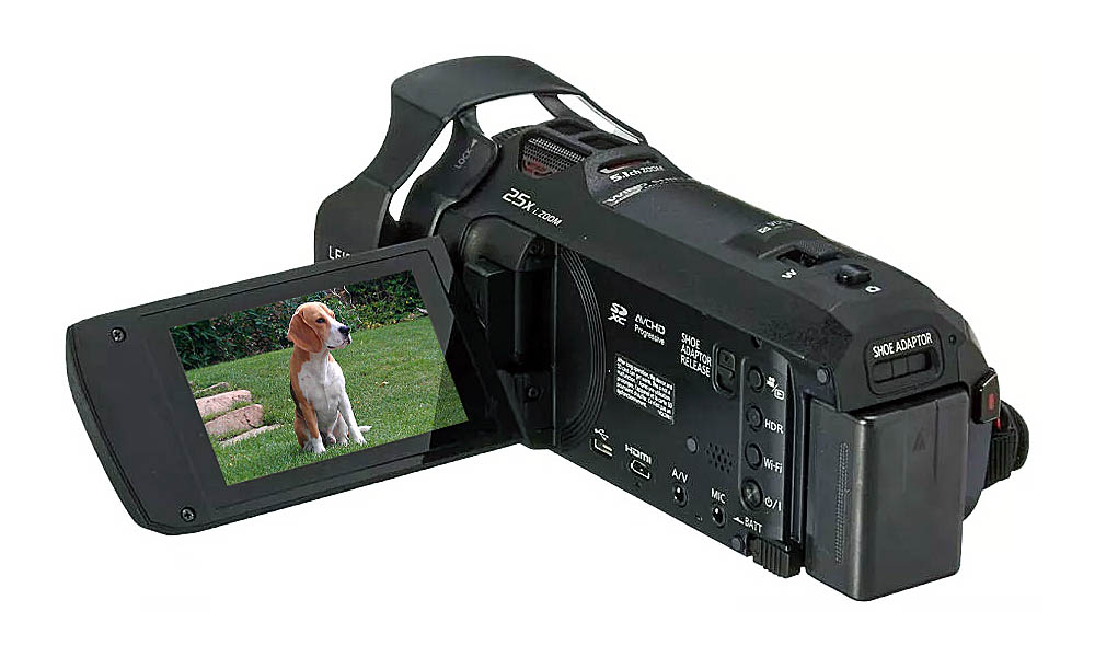Videokamera Panasonic HC-VX980 ve dvou detailech LCD