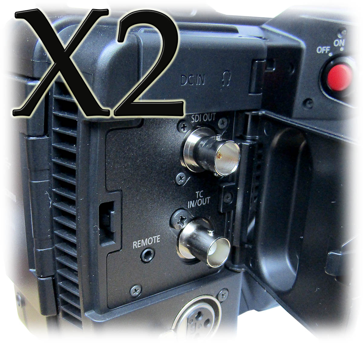 Panasonic HC-X2: detail zavřených a otevřených krytek SDI