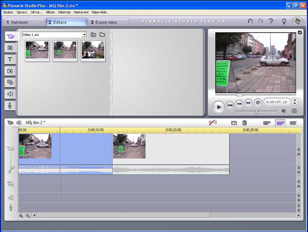 Teď k samotnému střihovému programu. Jak jsem již předeslal, na náš počítač jsem instaloval verzi +10, která je rozšířena oproti standardní desítce např. o možnost střihu HIGH-formátu HDV, umí zrychlovat a zpomalovat video i zvuk, zvládne revers obrazu nebo také náhled videa na druhém monitoru a obsahuje dalších 18 obrazových a 5 zvukových Plug-Inů. Oproti loňské devítkové verzi je program vybaven možností importu formátu WMV, dokáže náhled videa v plném rozlišení a renderuje na pozadí. A na jakém stroji by se tento program měl rozhýbat? Minimální konfigurace je následující: procesor 1,4GHz (doporučeno 2,4GHz), 512 MB RAM (doporučeno 1 GB), OS Win XP, DirectX 9 nebo vyšší kompatibilní grafickou kartu (pro editaci HDV je vyžadováno minimálně 256 MB paměti karty), zvuková karta kompatibilní s DirectX 9. Samozřejmě je potřebná CD/DVD mechanika a harddisk schopný reálného datového toku 4 MB/s. Počítač, na kterém jsem SW zkoušel - AMD 1900+, 512 MB RAM, ATi Radeon 9200 128MB, 40 GB disk - byl zřejmě už slabší a popravdě řečeno s programem vůbec nekamarádil podle mých představ. U spousty věcí člověk po kliknutí na určitou funkci dlouho čeká a při zkušebním provozu s HD-videem to byla víc tragédie, než editace videa…