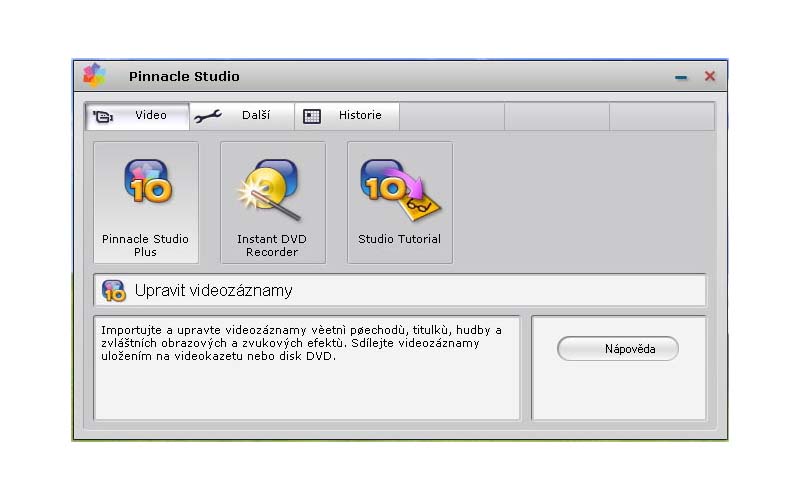 Celá instalace zabírá něco málo přes 3 GB místa na disku, ale jde "ořezat" až na cca 1GB. Po doinstalování se objeví na ploše ikona s názvem Studio Launcher a zde je první rozdíl oproti devítce. Po odkliknutí se nerozjede přímo střihový program, ale uživatel se dostane do malé nabídky, kde je možné zvolit jeden ze tří podprogramů. První zleva je tady samotné střihové studio, uprostřed je program s názvem Instant DVD Recorder a třetí možnost nabízí spuštění výukového programu. Bohužel české prostředí najdeme jen v editačním programu. No vlastně i Studio Launcher (spouštěcí nabídka) je česky, ale některé znaky nejsou zobrazovány správně (například: Importujte a upravte videozáznamy včetně přechodů…). Přiznám se hned bez mučení, že samotný výukový program jsem neabsolvoval, jen o něm mohu napsat, že je to Flashová aplikace velmi přehledně řešená a i když je anglicky, spoustou animací pomůže pochopit, co se vlastně od uživatele chce, resp. na co by měl střihač klikat a co pak program provede…