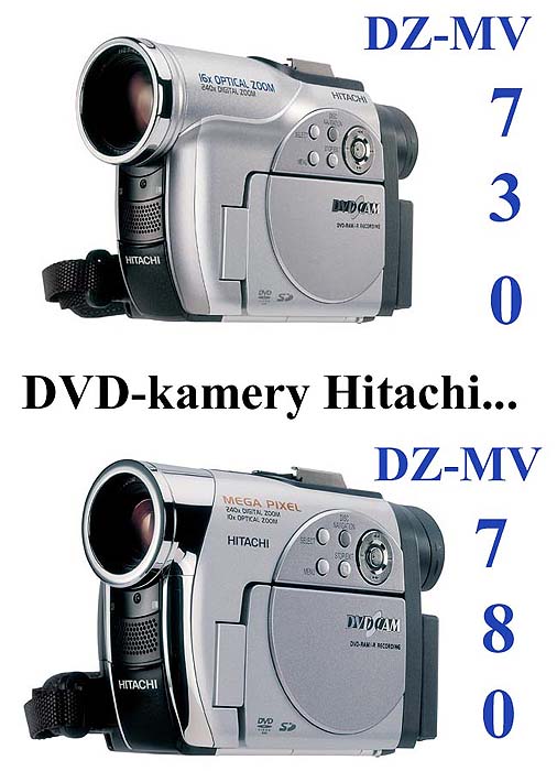 DVD-kamery fi Hitachi. Ve středoevropském regionu sice dnes tvoří velkou neznámou, ale my se pokusíme přece jen čtenáře s jejich sortimentem seznámit. Je to podle nás nutné nejenom proto, že naše firma měla tu čest i několik kousků prodat, ale hlavně nejspíše z důvodů pomyslného vztahu rodičovství k celé myšlence DVD-videokamer. Už v roce 2001 vyrukovala firma Hitachi s prvními modely přístrojů, pro něž si zvolila oboustranný disk DVD-RAM. A tehdy (na jaře 2002) jsme přinesli o převratné novince alespoň malou zprávu, jež je dávno přesunuta do archívu našich článků. Následně se nám i podařilo přes nejmenovaný velkoobchod sehnat typ DZ-MV100 fyzicky a přinést už přece jen poněkud souvislejší recenzi. A v letech 2003-2004 jsme dokonce drželi skladem i trojici modelů této značky, o čemž by mohla částečně snad svědčit i recenze na dva z nich. Dnešní sortiment značky tvoří stejně jako u konkurenční firmy Sony celá šestice (!) s typovým označením DZ-MV550E-780E a dvoumegapixelový DZG-20E, alespoň co se dá dohledat na jejich internetových stránkách. Připomeňme ještě dodavatelskou výpomoc firmě Panasonic (viz dále) a momentálně velmi omezenou dostupnost DVD-videokamer Hitachi na našem trhu…