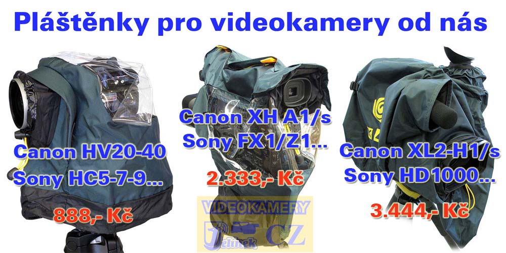 Pláštěnku pro svou videokameru někdy potřeboval snad každý živnostník, který má v branži cosi natočeno. A firma Hama (s brněnskou centrálou) konečně začala dodávat ucelený sortiment takových ochran, konkrétně firmy KATA, která se tu už druhdy prezentovala dobrým výběrem; a právě Hama dala tomuhle praktickému sortimentu i přijatelné ceny. Pravda: obchodnicky nejde o žádný velký trhák, ale prodejnost pláštěnek NENÍ tak řídká, aby nestály za držení skladem. Zopakujme si účel a logiku použití takové ochrany. D隝, sníh, ale často i prachové vichřice všeho druhu (a nemusí jít ani o pouš) jsou pro videokameru nebezpečím a zhoubou. Rozumný uživatel - potažmo živnostník na kšefty - se vybaví pláštěnkou do každé akce, kde není jisté, jak mnoho bude muset točit venku a hlavně v jakém počasí. Náš postupně plněný Šopík nabízí tři hlavní velikosti pláštěnek, které obsáhnou celkem na jistotu většinu ze současného sortimentu videokamer, jež by mohly přicházet pro společenské točiče v úvahu. A nejmenší z ochran pak určitě vyhoví i většině ještě menších mašinek, než jsou určeny, tedy konkurenční duo Canon HV40 a Sony HC9…