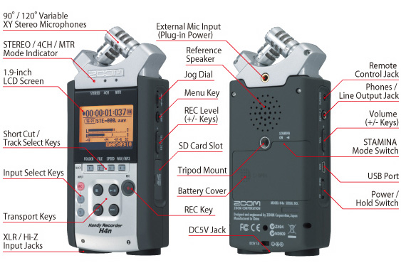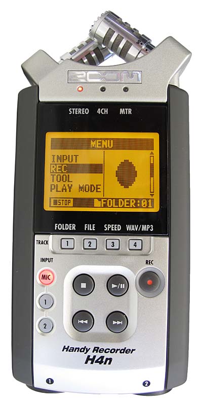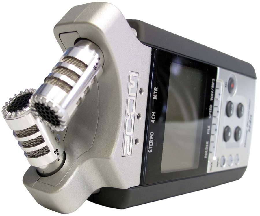ZOOM H4n. Externí audio-záznamník zná asi skoro každý zasvěcenější fanoušek našeho oboru. Předchozí model H4 (bez "n") dostal vcelku výrazný facelift v podobě větších liter displeje, nechá si natáčet tělíska vestavěných mikrofonů ke změně charakteristik a krom toho mu přibyl reproduktorek. Elegance, relativně dostupná cena i všechny výhody dosavadní čtyřky zůstaly při starém. Náročnější fajnšmekři i kameramanští živnostníci tak mají na výběr praktického pomocníka, který nezávisle, souvisle a nenápadně zaznamená kompletní zvukové prostředí jakékoli akce. Zopakujme si, že ZOOM H4n je napájen tužkovými články AA, tedy nabíjecími i jednorázovými, nechybí mu mj. profesionální XLR-konektory (tzv. fantomy) na další spojení s ještě lepšími exterňáky a zvukové stopy zaznamenává na SD-karty s indikací všech důležitých údajů na čitelném displeji. Milovníkům cizích zkratek ještě připišme, že zmiňovanou věcičku charakterizuje 24bitový formát PCM WAV coby MP3 s kmitočtem 96kHz a všem se zmiňme o (mimochodem) možnosti připojit záznamník i třebas k mixážnímu pultu místního či přespolního (to jen pro vyčerpání slovíček :-D) diskžokeje. A samozřejmě ještě dovětek, že se H4n kupuje i od nás (prodáváme 3-5 kousků měsíčně); a třebas přes náš Šopík Digikamery…