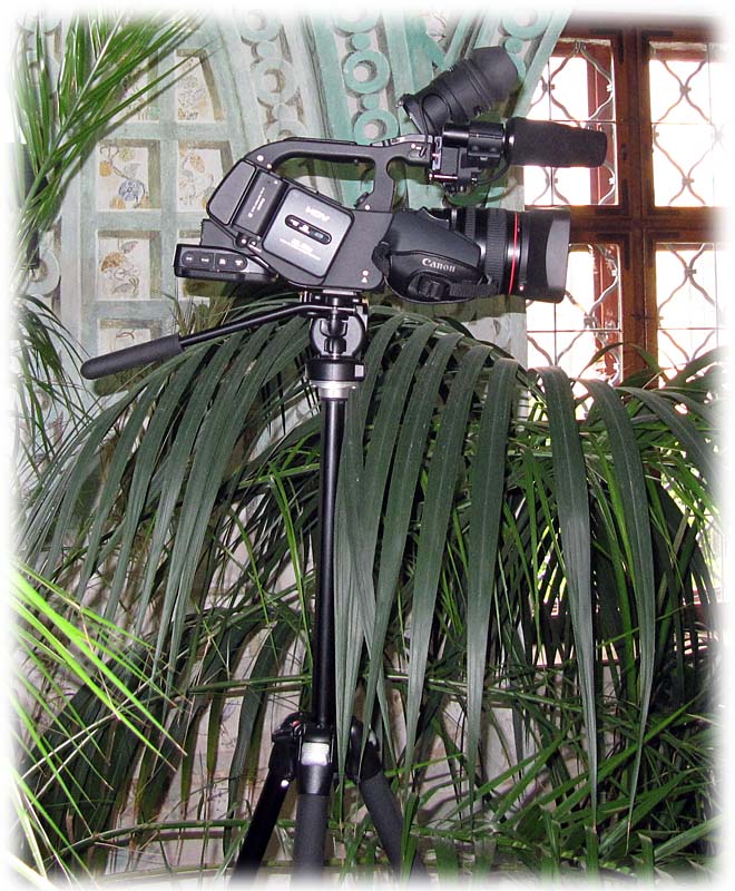 Detail stativu Manfrotto s kamerou XL H1S (Kliknutí zvětší)