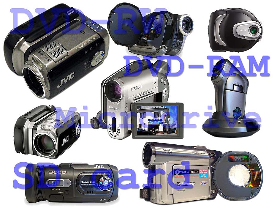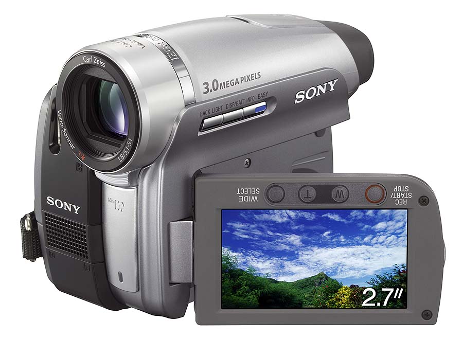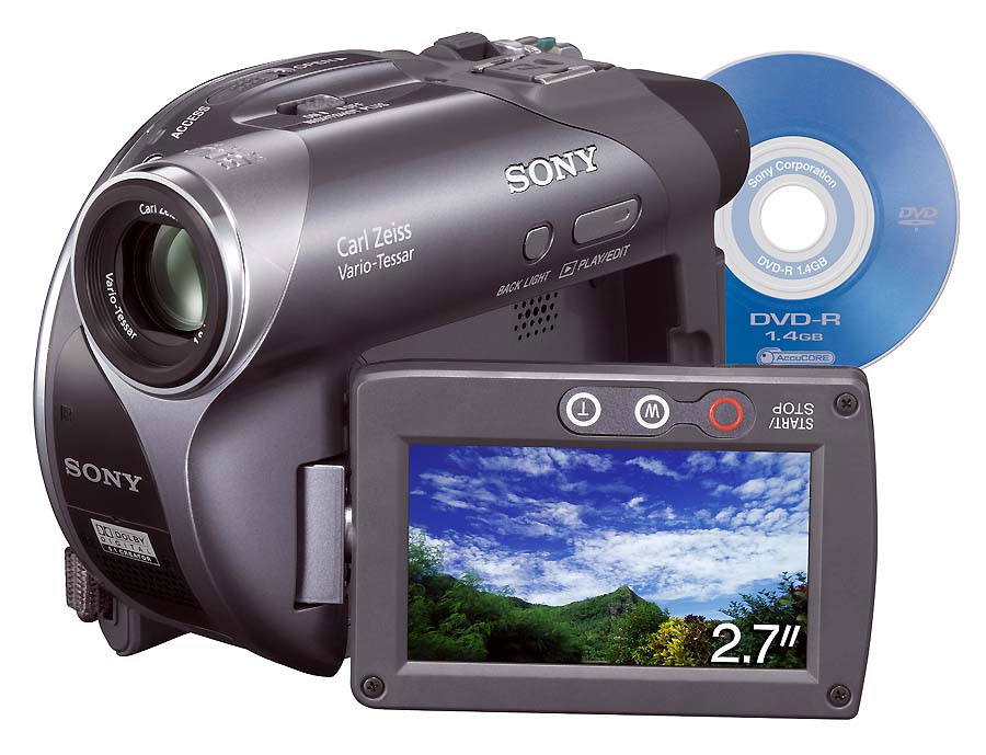 A to by nebyl Sony, aby nechtěl dokazovat svůj echt vůdčí potenciál světa elektroniky největším (!) počtem nahrávacích systémů. Podle čs. stránek už sice zjevně skončila éra analogové Hi8 - tedy s výjimkou doznívajícího digitálního použití této 8mm pásky ve dvojici modelů D8 - a novátorský fenomén HDV je zatím ještě v začátcích, ale novinky s osmicentimetrovým diskem jsou opětovně v ucelené řadě (a 2 tvary - viz obrázky): základní DCR-DVD105 má šestinový snímač s 0,8MPx, vyšší DVD205 už je osazen 1/5,5“ čipem s 1,07MPx a DVD405 dokonce třetinovým třímegáčem. Vrcholem nemá být stroj s ještě větším počtem pixel, ale C-MOS-senzorem (s 2MPx, ale výrobce udává foto-maximum 4MPx: 2.304x1.728) vybavený DVD505, jenž jako jediný ve formátu DVD nabízí ke koukání 3,5" LCD-displej (221kPx) a dokonce i 4kanálový zvuk z vestavěných mikrofonů Dolby® Digital 5.1, přičemž tato audio-vymoženost se týká i DVD405. Je vidět, že myšlenky 8cm disku se zatím nevzdá žádný z jeho producentů, ale autor textu si dovoluje pochybovat, že DVD-formát bude vyráběn nějak zásadně dlouho: disky nejsou levné a mají omezenou kapacitu asi 18 minut v nejvyšší kvalitě. Navíc je jasné, že reklama "Natočit-Vysunout-Přehrát" takticky vynechává (důležité) informace o nutnostech finalizací (a tzv. odfinalizování) disku, jež jsou pro anoncované užívání těchto přístrojů přinejmenším komplikacemi…