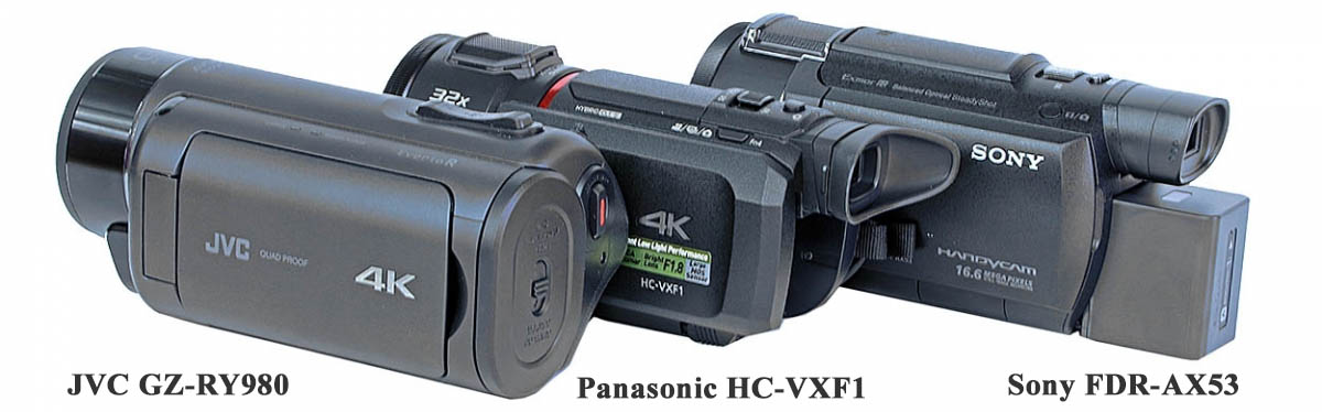 Videokamery Panasonic HC-VXF1 a Sony FDR-AX53 zprava