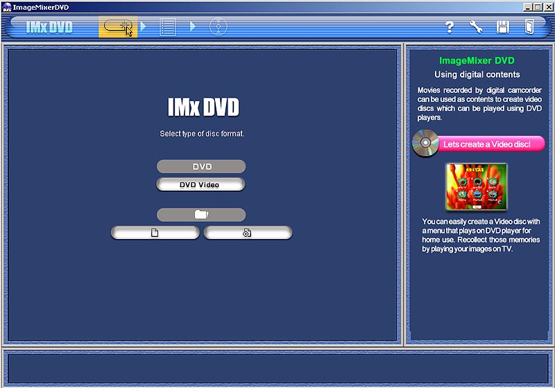 Vstupní obrazovka ImageMixer DVD (Klikni pro zvětšení)