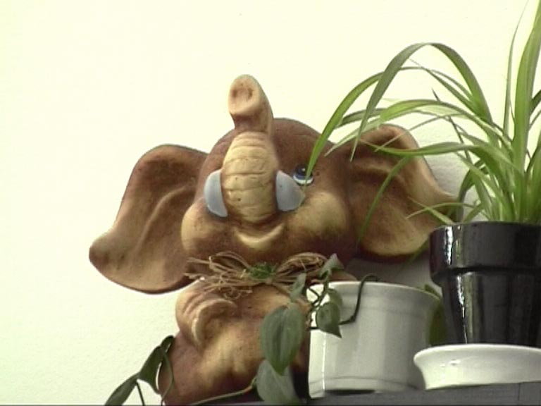 Mimochodem: datový tok mi přehrávač ukazoval přes 30.000kbps v módu DV a progresivním nahrávání, přes 31tisíc kb/vteřinu při nahrávání akvária a přes 32kbps při další nahrávce vyobrazených slonů na skříni, ale jen něco přes 6.000kbps, když stáhnu totéž jako MPEG. A jak jsem už psal výše: jest tohle opravdu kamera, ze které se nechá přehrávaný obraz (ne každý mód samozřejmě) zvětšit na celý monitor (17" ADi MicroScan s obrazovkou Trinitron) a - pardon žargon - PÁNOVÉ, VONO TO FAKT NEZOUBKUJE! Kdo si dosazoval něco o svítícím výkalu, je pamětníkem Menšíka jako já, že ano (a o zapomenutí na čtenářky to není). Nejvíce je ten rozdíl zřejmý, když je hned za progresivními obrázky natočen kousek běžného AVI-videa (např.) z úplně jiné kamery (a před X dny), do něhož jsem přemazáváním nahrával dnešní zkušební kousky. JE TO FAKT DOBRÝ a JVC nekecá! No a tím se vlastně přiblížilo naznačení nějakého zhodnocení a ukončení prvního povídání po prázdninách. Jenže: co může o takové expresivní krasavici ztepilé vykládat chlap, kterej se s ní mohl pomazlit jen několik půl-dní a fakt nemá zkušeností s milenkou na rozdávání (a že PD1 milenka být může)…?