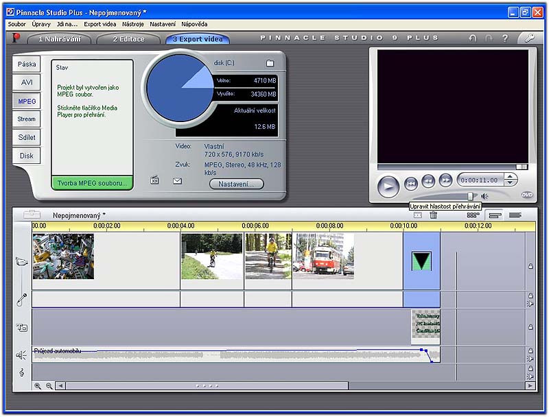Ukázka jednoduše zeditovaných scén MPEG2 v programu Pinnacle VS9 plus: vlak Lego, cyklisté a tramvaj (zvuk troubení ze SW, délka 11 vteřin, 12,5MB)